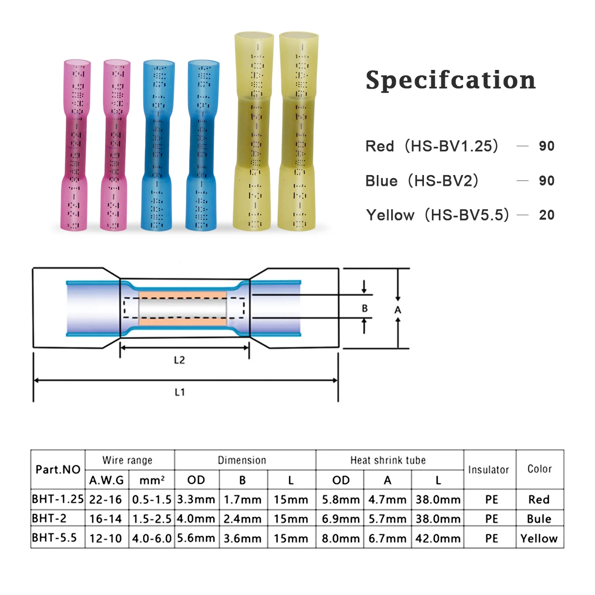 Клеммы электрические термоусадочные, 22-16 AWG, 10050 шт.