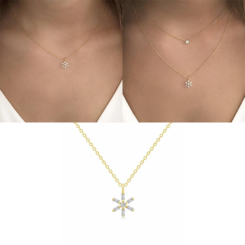 GS S925 стерлингового серебра модные Снежинка Pandent ожерелья для женщин со стразами ключицы цепи ожерелье ювелирные изделия воротник плата