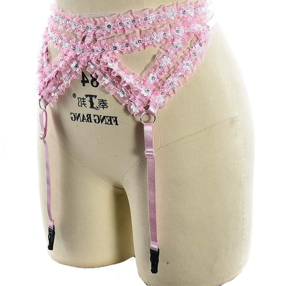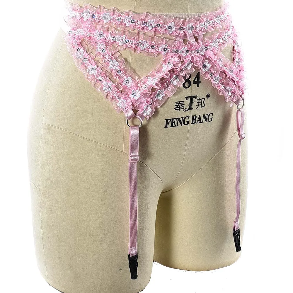 Для женщин розовое кружевное платье с цветочным рисунком с поясом бондаж тела жгут регулируемые колготки ноги средства ухода за кожей клетка гот сексуальное женское белье панк ремень-подвязка