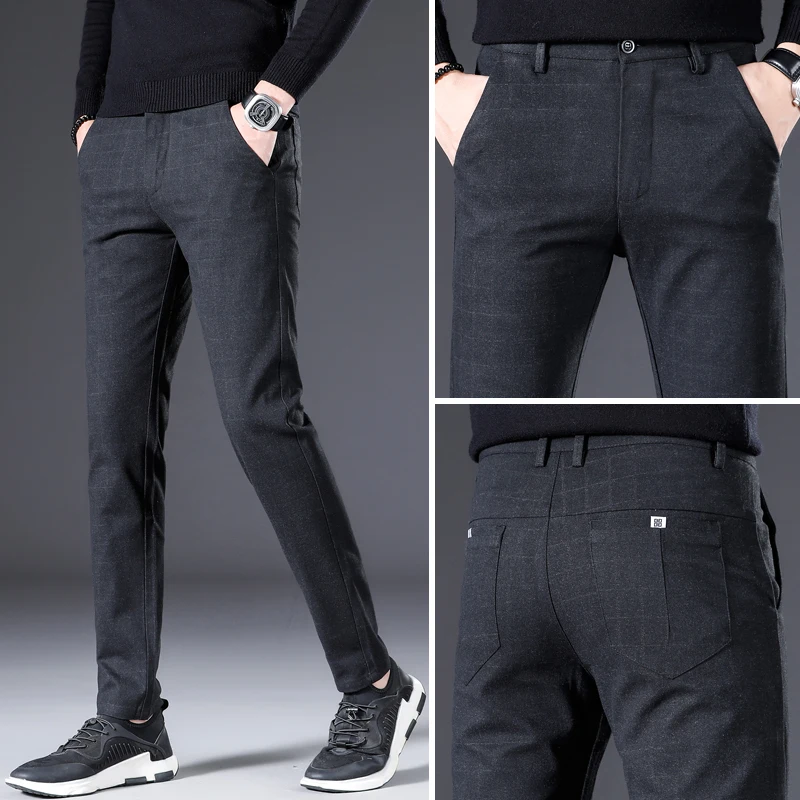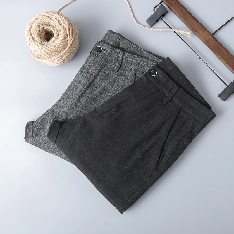 Мужские длинные брюки в клетку, серые повседневные хлопковые брюки-карандаш, рабочая одежда, большие размеры 28-40, 2021