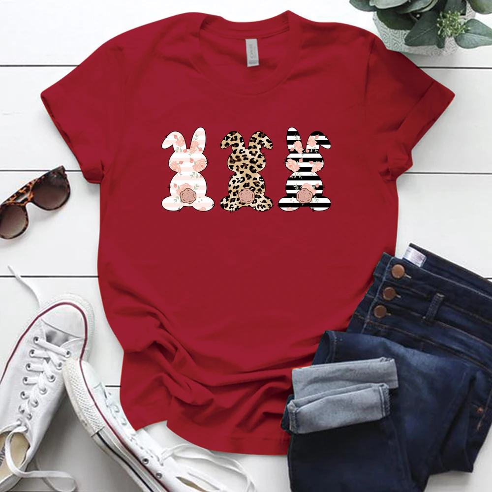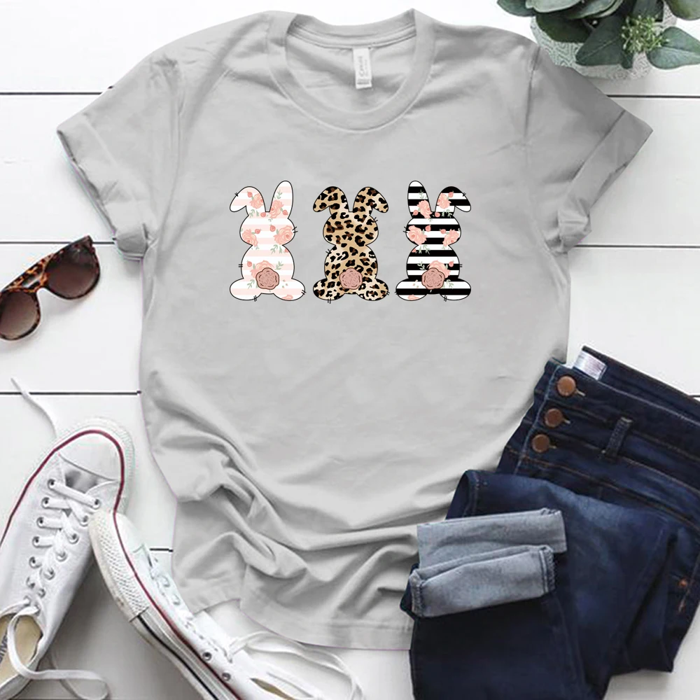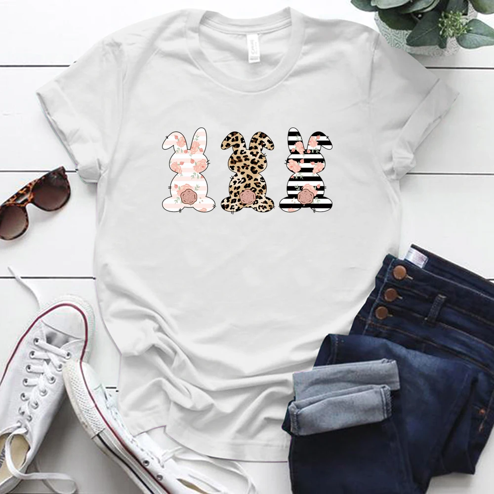Женская футболка с принтом кроликов на Пасхальный день, летняя одежда, топы свободного покроя, Размеры S- 5xl, в стиле Харадзюку