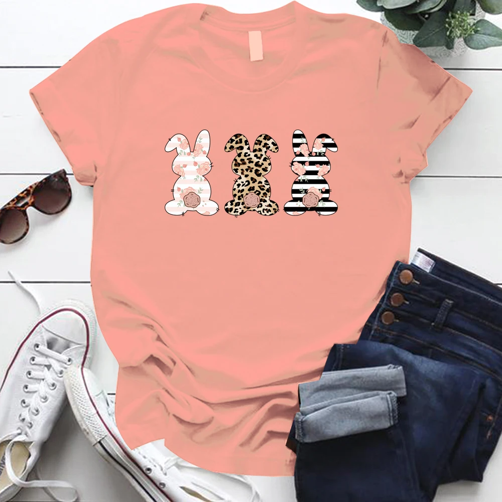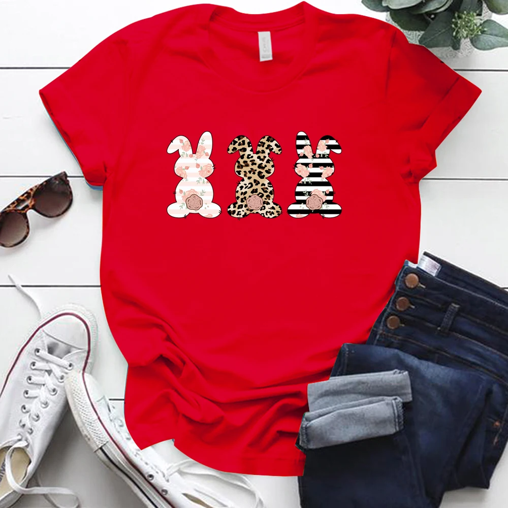 Женская футболка с принтом кроликов на Пасху, летняя одежда, топы свободного покроя, Размеры S- 5xl, женские футболки в стиле Харадзюку