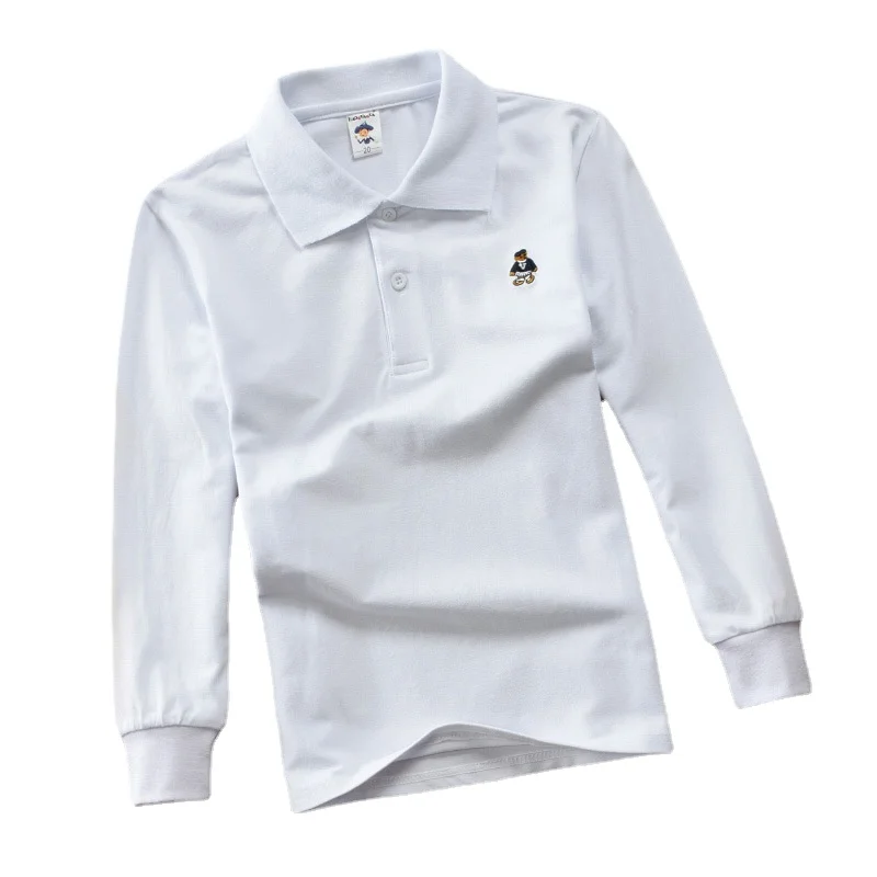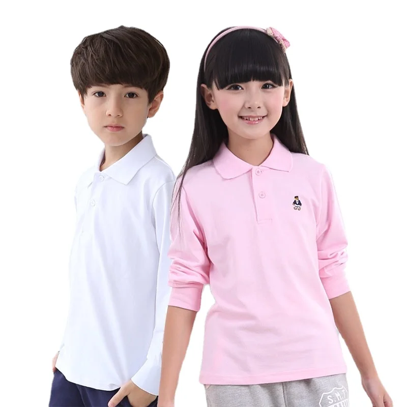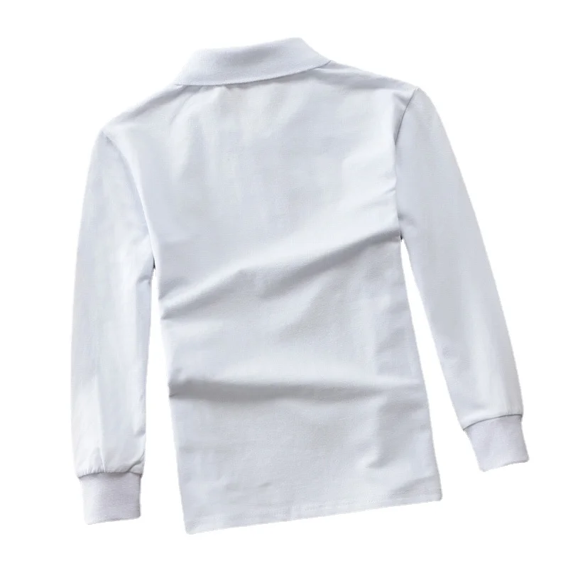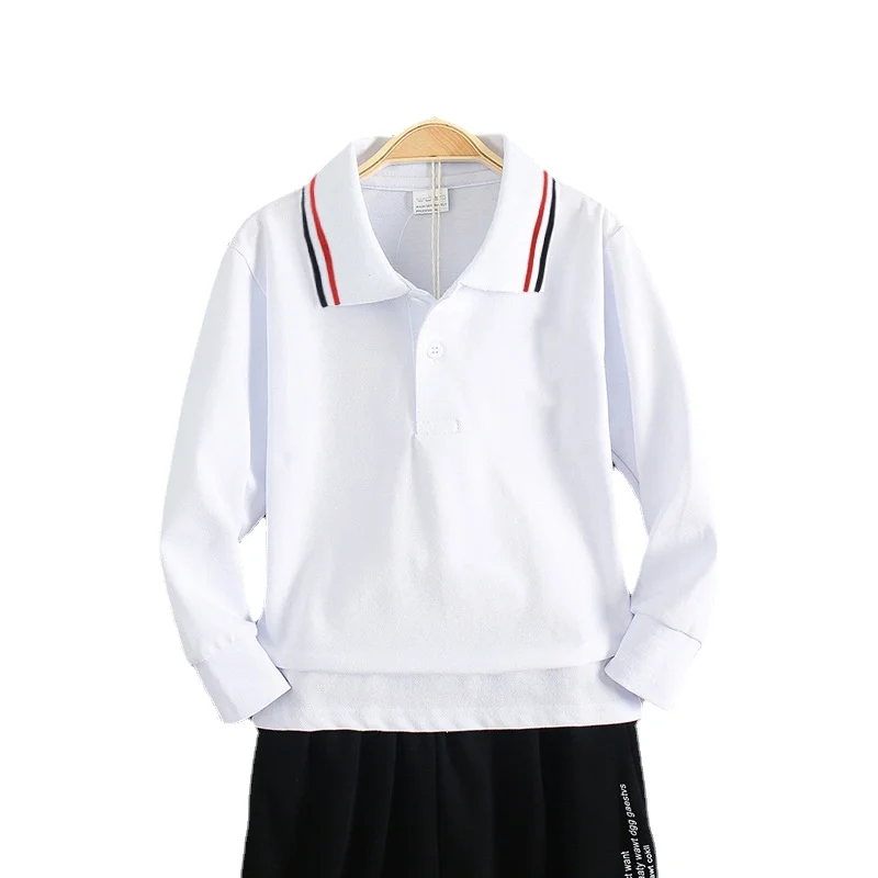 Белая рубашка-поло с длинным рукавом, летняя рубашка-поло для подростков, школьная одежда для мальчиков, белая Повседневная рубашка с длинным рукавом