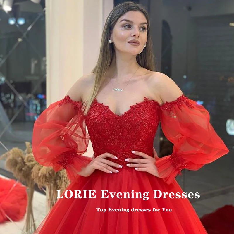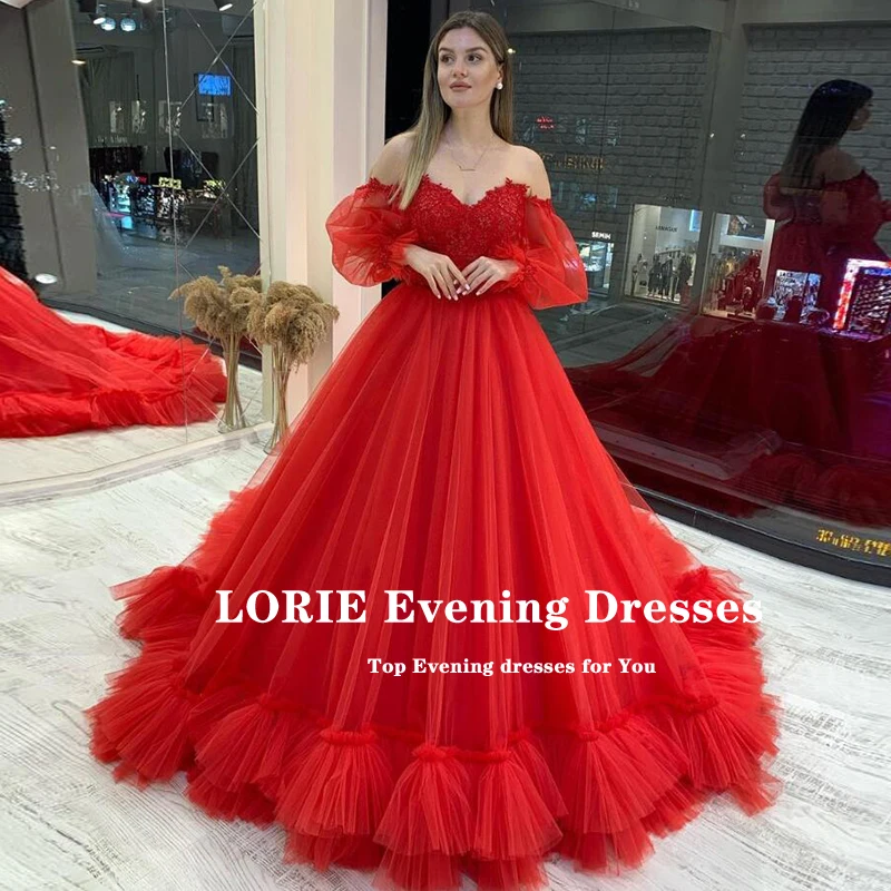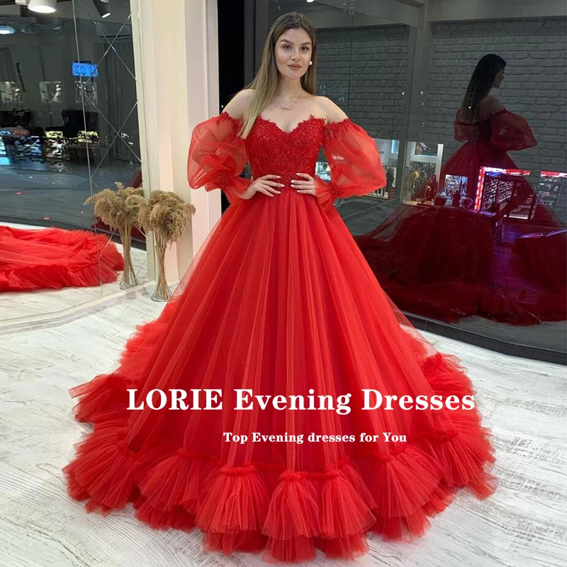 Женское вечернее платье-трапеция LORIE, красное бальное платье с аппликацией, пышными рукавами, из тюля, для выпускного вечера, 2021