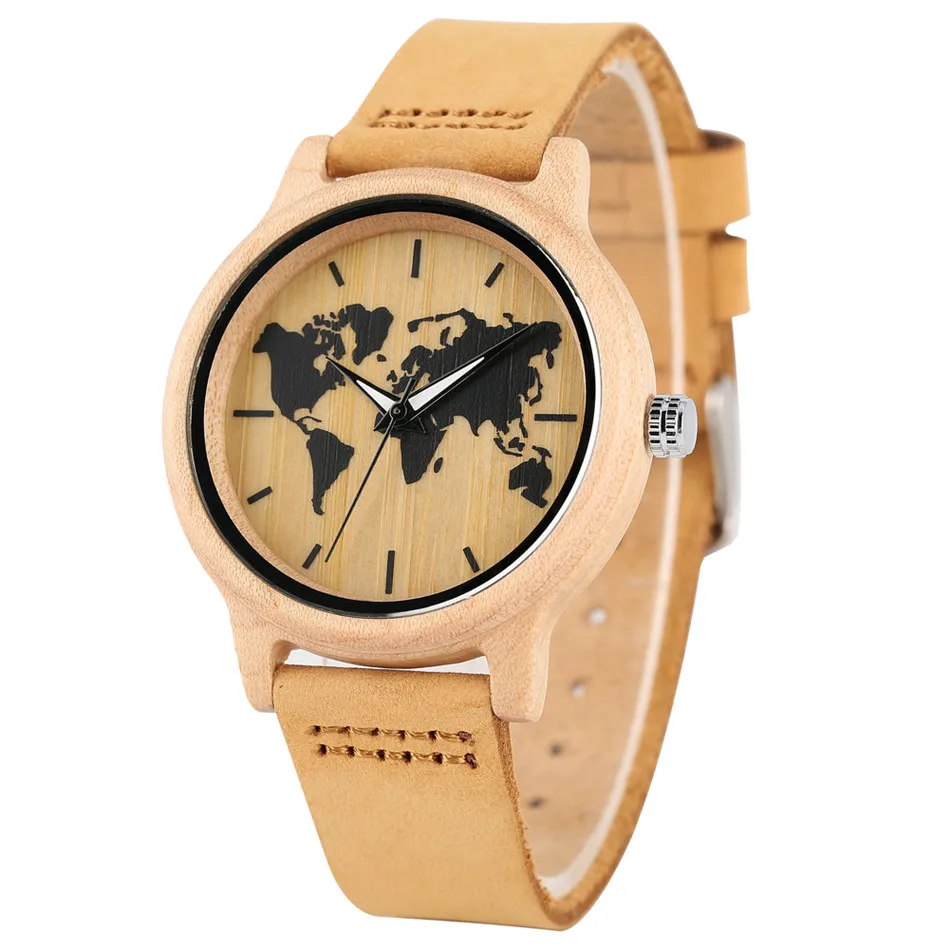 Резьба карта мира деревянные часы мужские модные бамбуковые деревян...