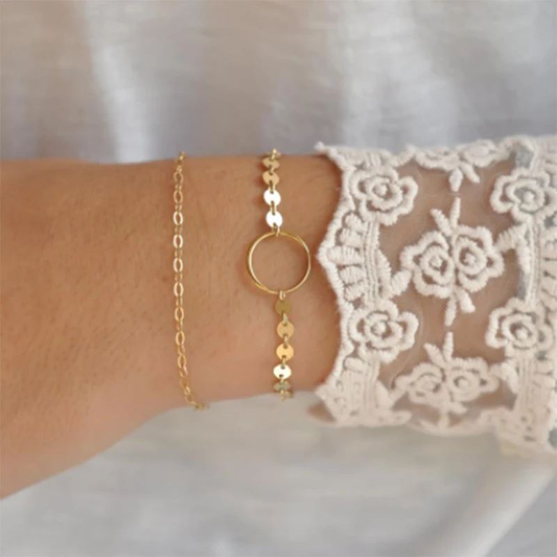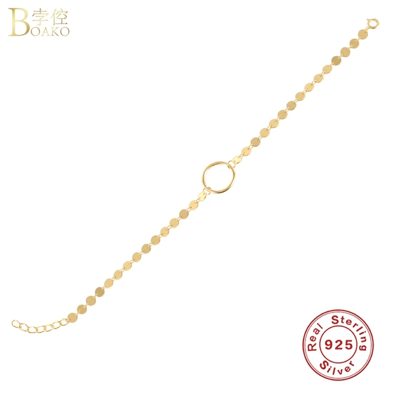 Женский браслет из серебра 925 пробы, с круглыми кольцами и звеньями Цепи