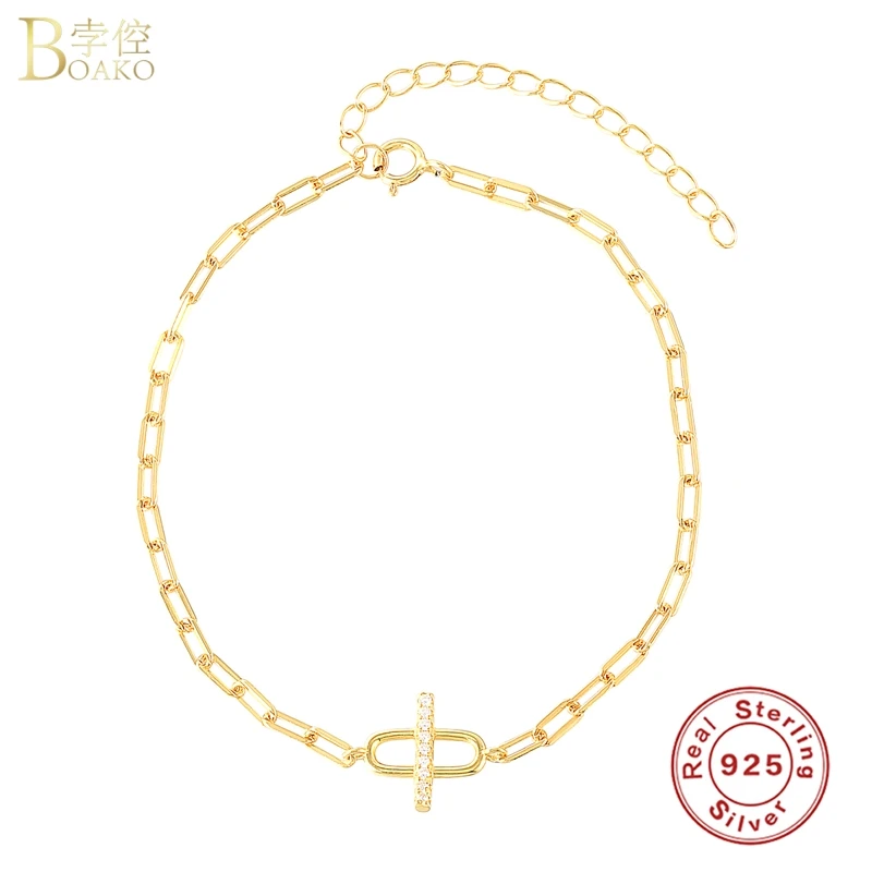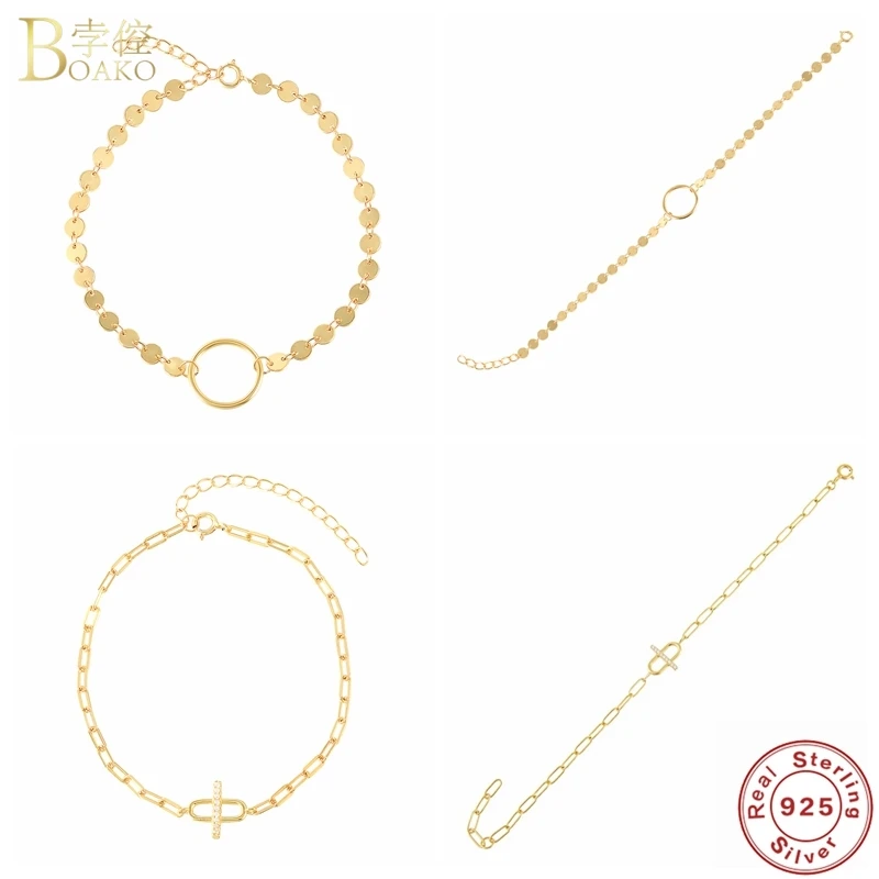 GS реальные 925 Стерлинговое Серебро Круглый Кольца звено цепи браслеты из нержавеющей стали для женщин Роскошные Очаровательные золотые Цвет браслет тонкие ювелирные браслеты