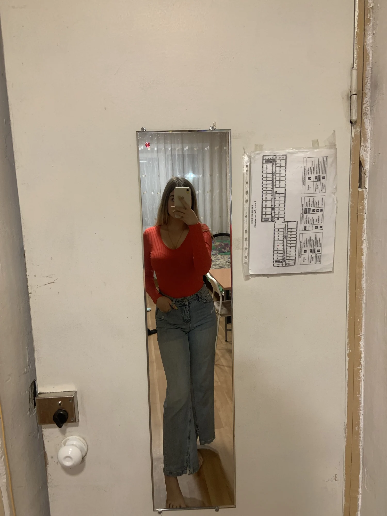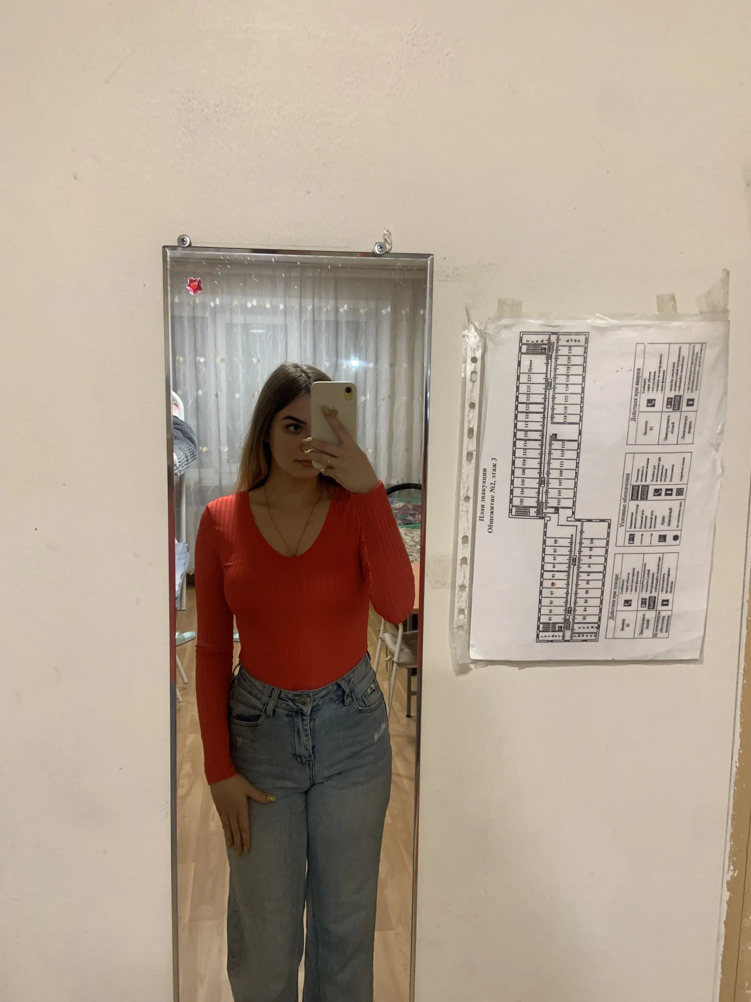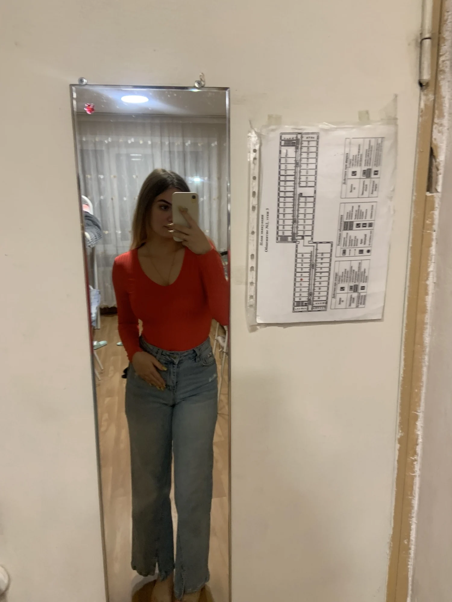 Женское боди с длинным рукавом и глубоким V-образным вырезом