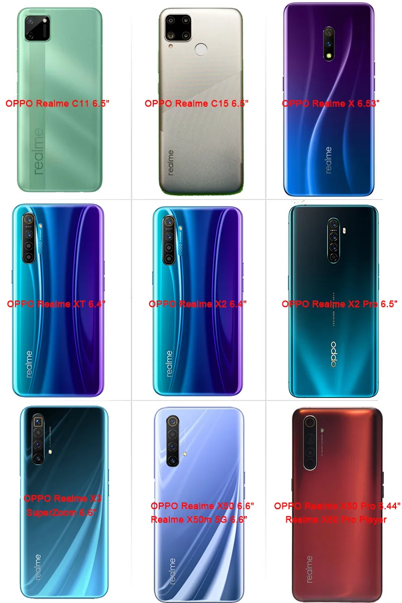 OPPO Realme 3/Realme 3i 6,22" OPPO Realme 3 Pro 6,3" OPPO Realme 5/Realme 5s/Realme 5i/Realme 6i 6,5" OPPO Realme 5 Pro 6,3 OPPO Realme 6/Realme 6S/Realme 6i (Индия) 6,5 OPPO Realme 6 Pro 6,6" Oppo Reno3 Pro 4G 6,4" Oppo Reno3 5G 6,4" Oppo Reno3 Pro 5G 6,5" Oppo Reno 4 5G 6,4" Oppo Reno 4 Pro 5G 6,5" Oppo Find X2 Lite 6,4" Oppo Find X2 Neo 6,5" Oppo Find X2 6,7" Oppo Find X2 Pro 6,7"