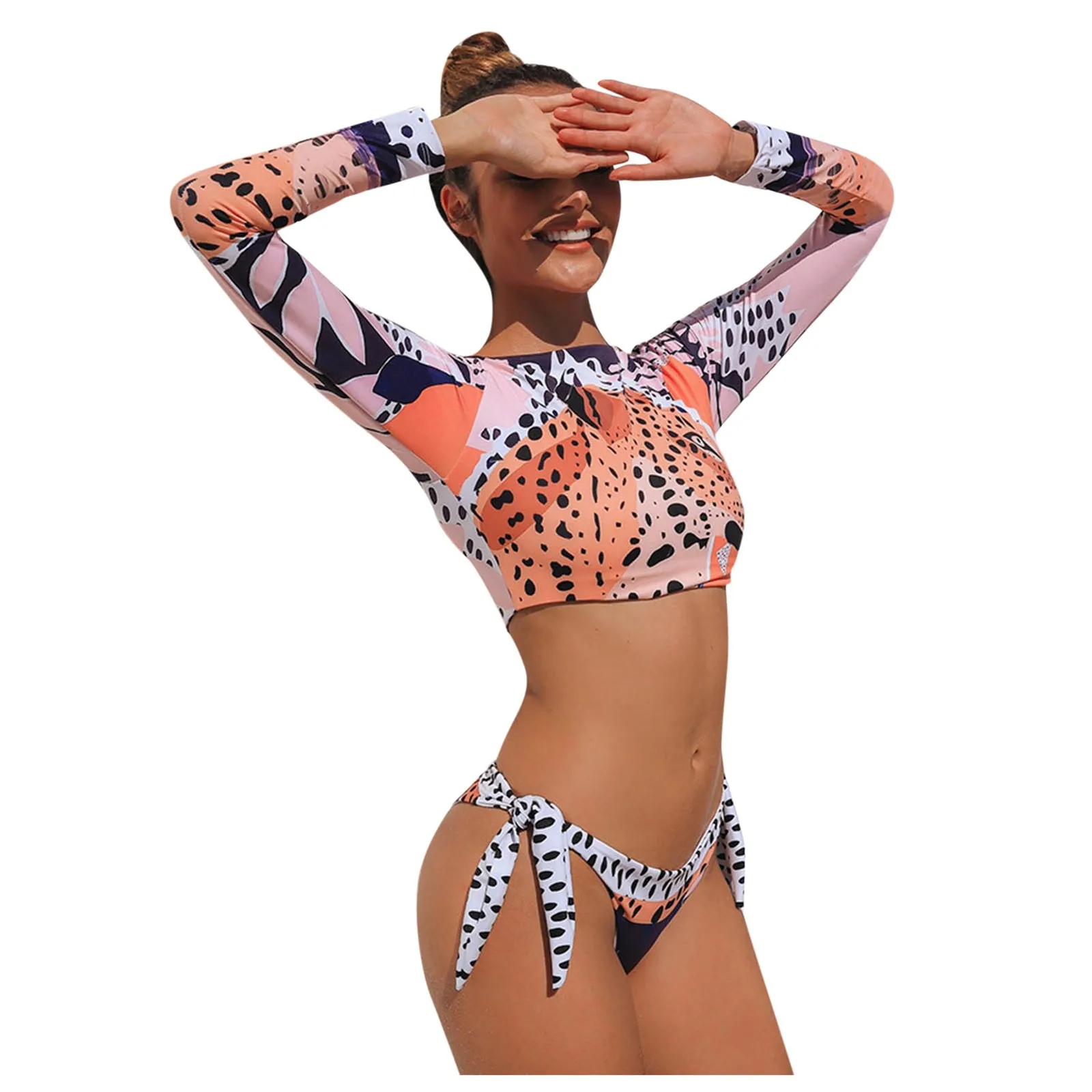 Женский купальник в горошек, с леопардовым принтом и длинными рукавами