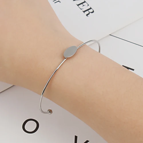 Браслет-манжета из нержавеющей стали, браслеты серебряного цвета дюйма, Круглый, 15,5 см (6 18 дюйма), Длинный регулируемый браслет, 1 шт.