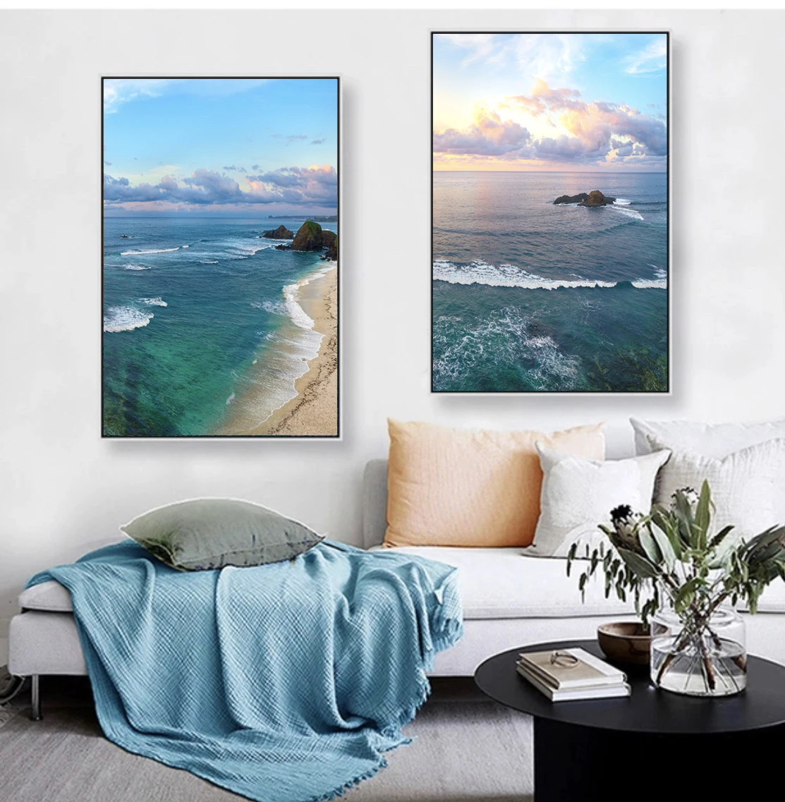 Классическая Картина на холсте с изображением синего Морского Пейзажа, скандинавские плакаты и принты, фрески для украшения интерьера дома, гостиной