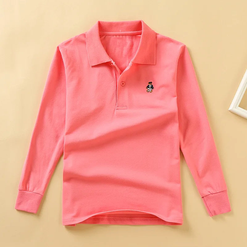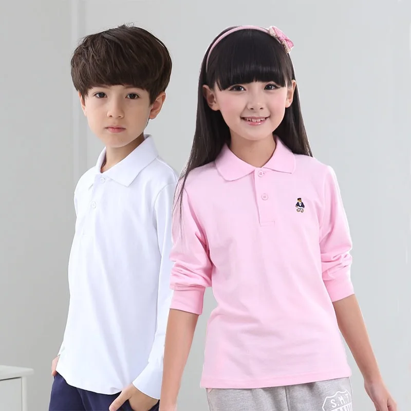 Детская рубашка поло с длинным рукавом рубашки поло для мальчиков Класс школьная одежда для мальчиков простая Однотонная рубашка повседневного стиля с длинным рукавом