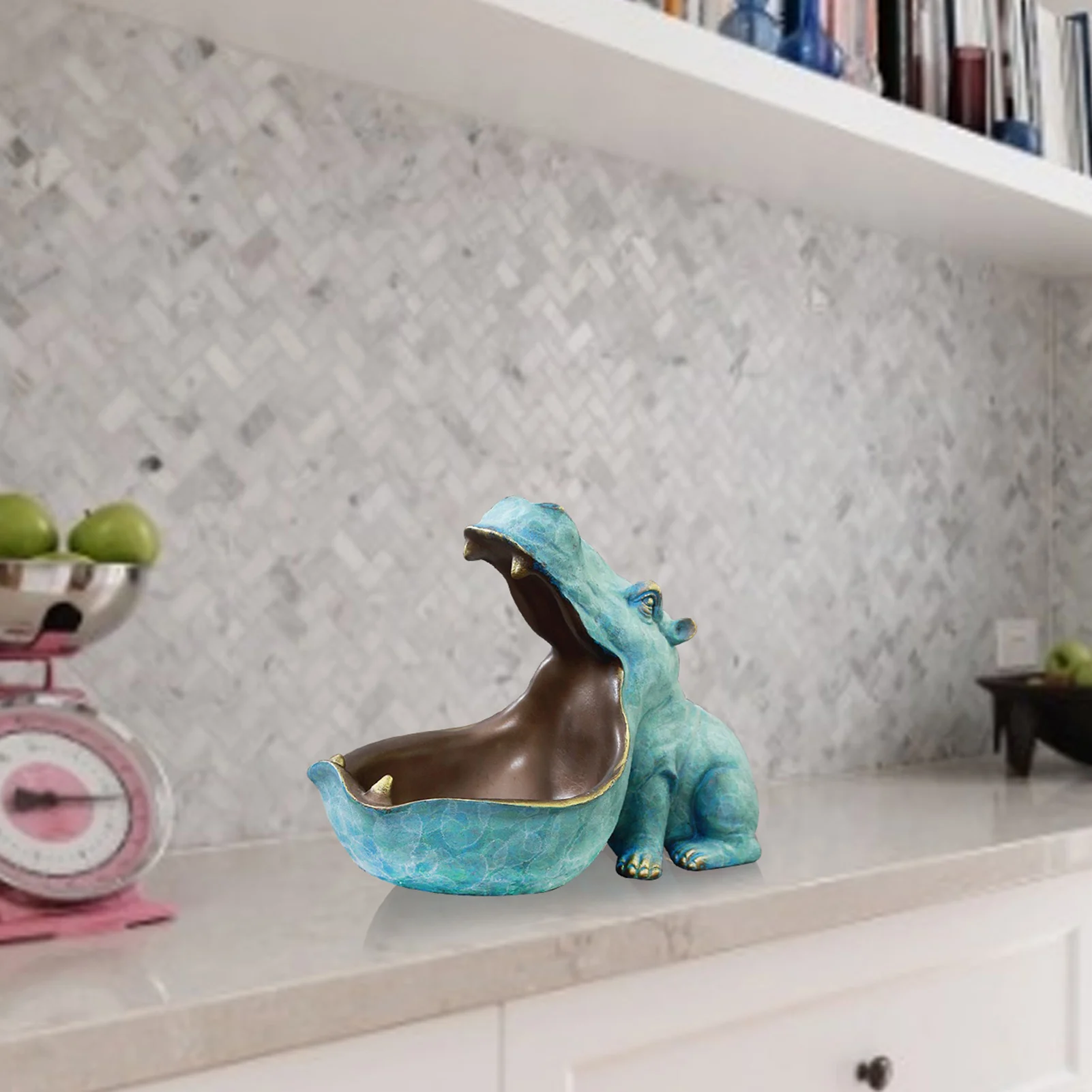 Большой рот гиппопотама фигурка чаша для ключей для украшения дома смолы фигурка Бегемот ювелирные изделия держатель # W0