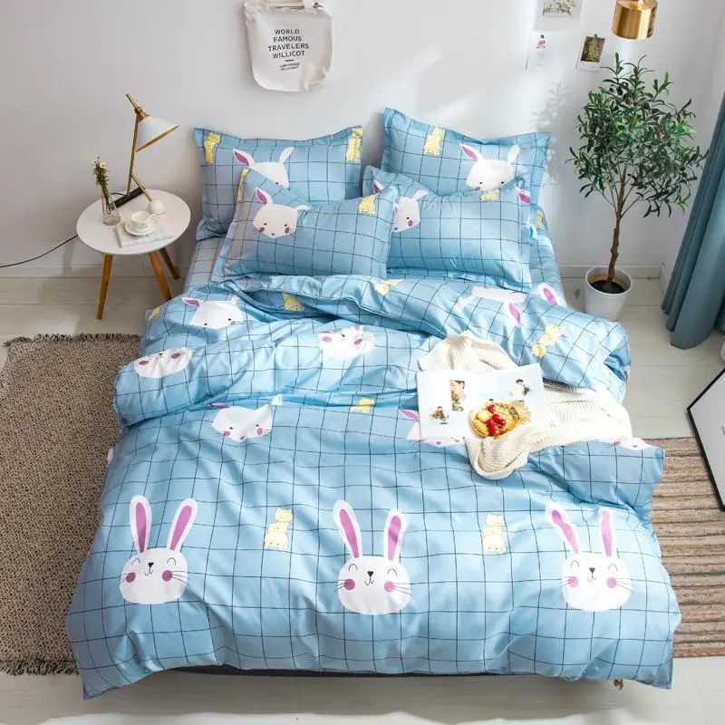 Скандинавский Комплект постельного белья, хлопковое детское милое одеяло с изображением животных, пододеяльник и простыняПолосатая клетчатая двухместная кровать королевского размера
