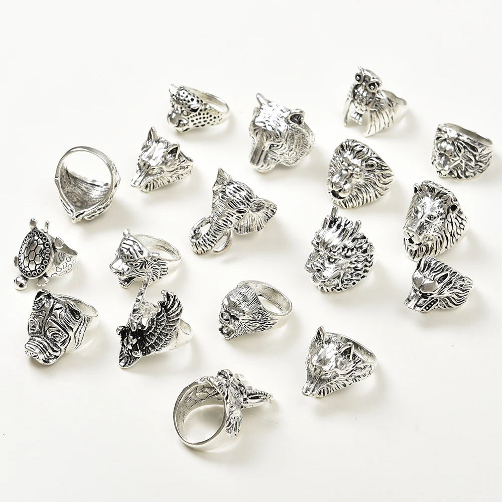 30 шт.лот винтажные панк животные смешанный стиль металлические ювелирные кольца для мужчин и женщин размер от 8 до 11
