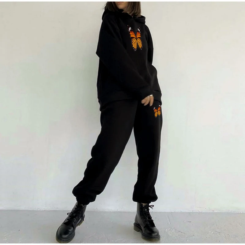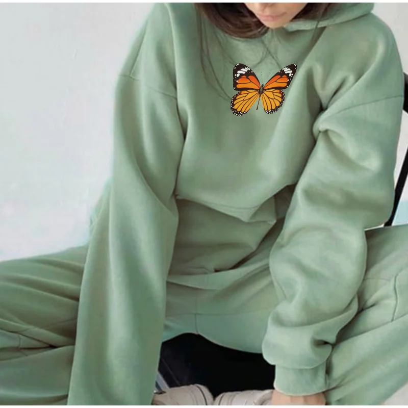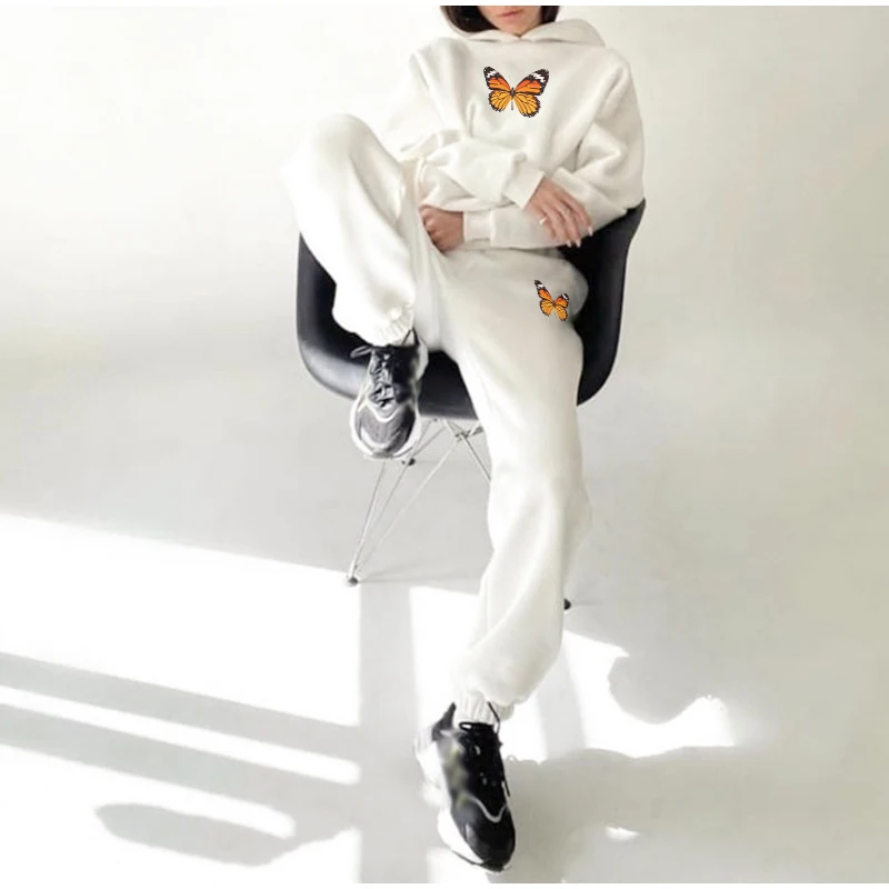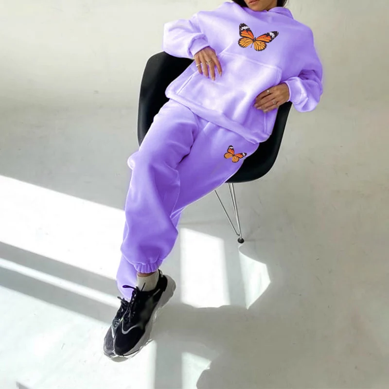 Костюм спортивный женский флисовый с бабочками и штанами, Осень-зима 2020