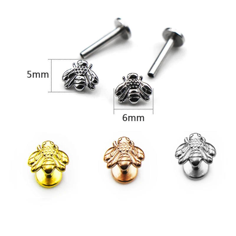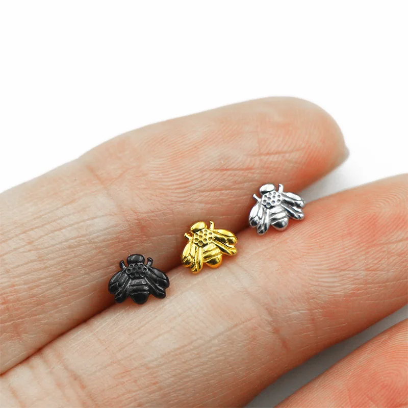 Кольцо из нержавеющей стали 16G в форме пчелы, пирсинг хряща Козелок Уха, пикантное кольцо-гвоздик, ювелирная губная серьга для тела, 1 шт.