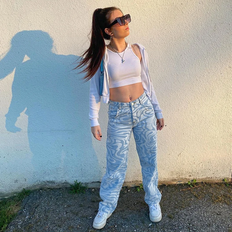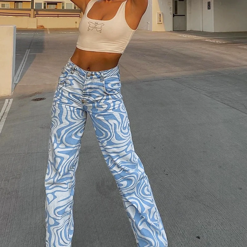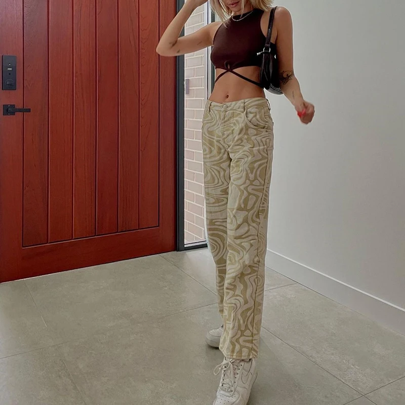 Джинсы женские в полоску, винтажная уличная одежда из денима с прин...