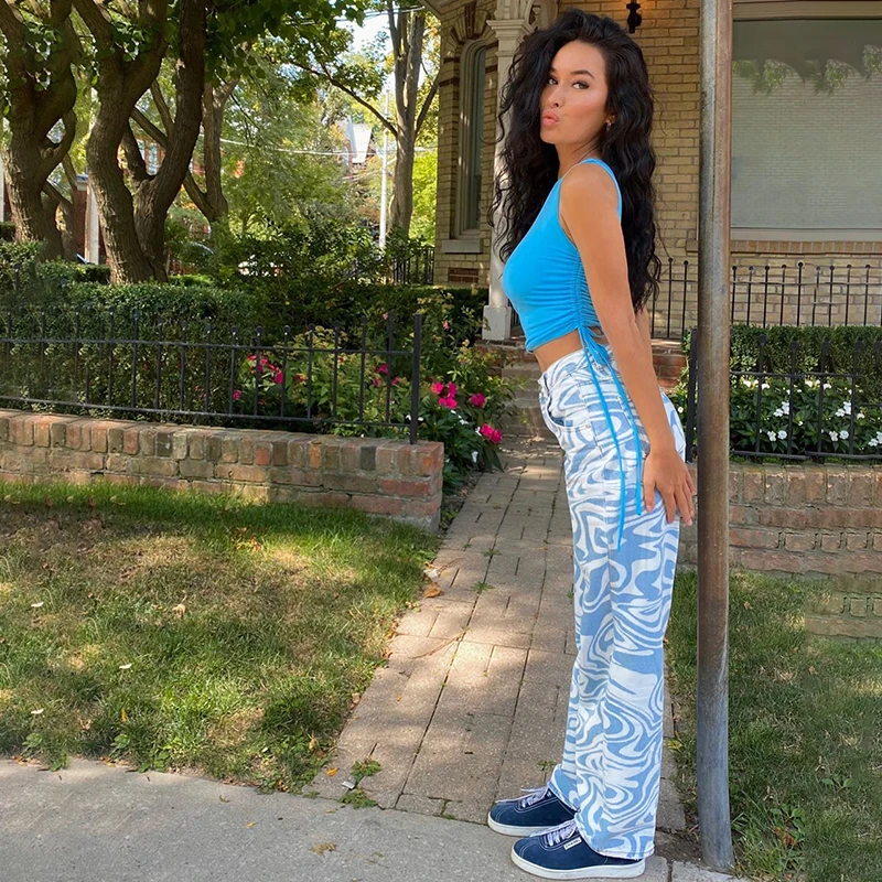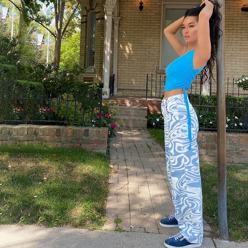 Брюки Darlingaga женские с высокой талией, уличная одежда с принтом...