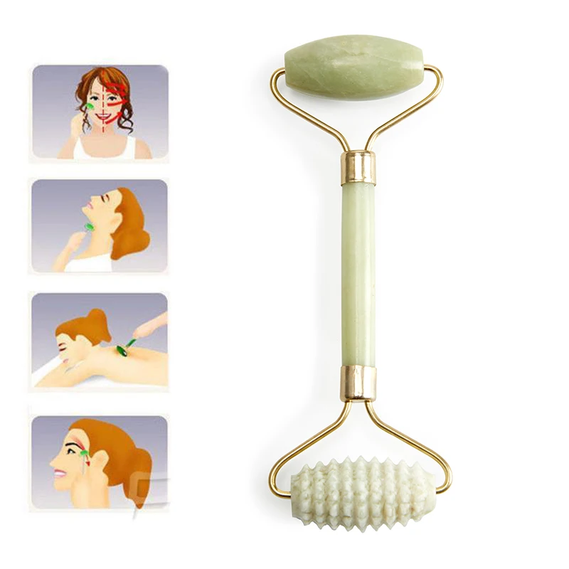 Нефритовый камень гуаша, массажный ролик для лица с двумя головками, массажер для кожи, лица и тела расслабления, похудения, красоты, подтяжки шеи
