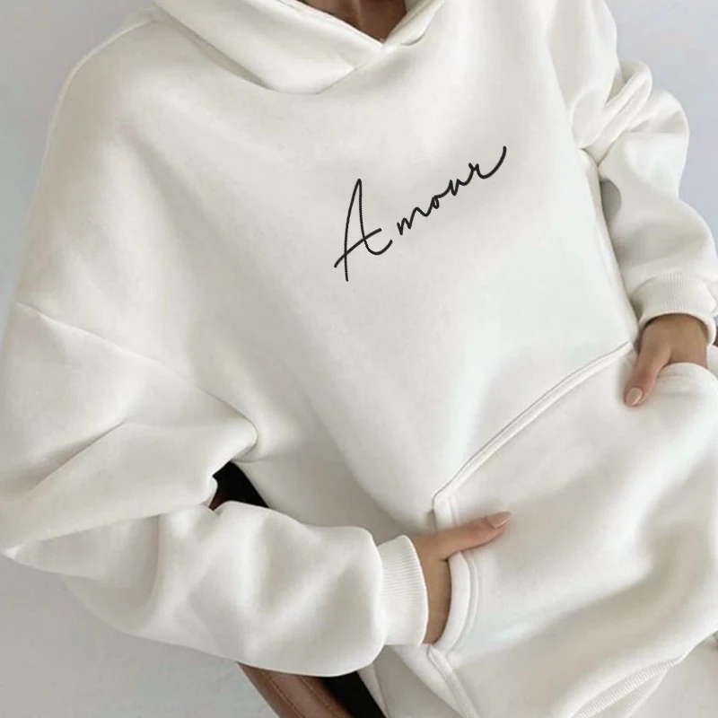 Женский спортивный костюм из двух предметов, костюм большого размера с капюшоном и длинными рукавами, Толстовка и штаны с надписью, осенняя спортивная одежда, 2021