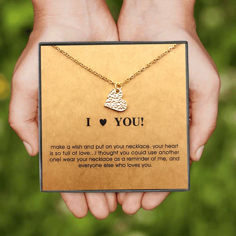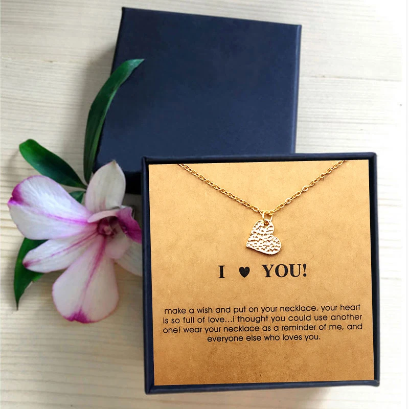 Цепочка Icareu с подвеской в виде Золотого сердца для мамы, бижутерия на свадьбу с надписью I Love You из сплава, короткая цепь до ключиц, подарочная коробка