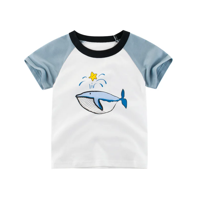 От 1 до 9 лет, детская одежда для мальчиков 100% хлопковые футболки с короткими рукавами с мультипликационным принтом Акула футболки для мальчиков; Летняя одежда для детей, Для детей, на лето верхняя одежда