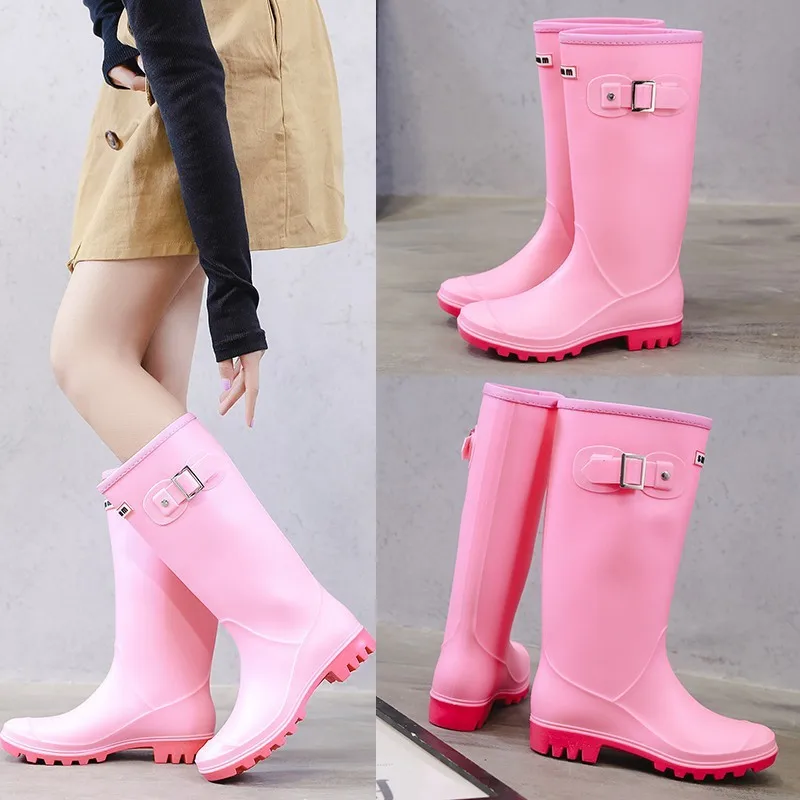 Сапоги женские резиновые до колена, ПВХ, водостойкие, с пряжкой