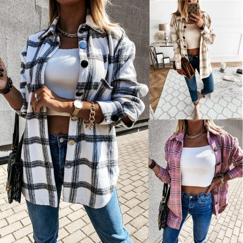 Женская клетчатая куртка с длинным рукавом, свободное винтажное пальто в стиле оверсайз на осень и зиму, 2020