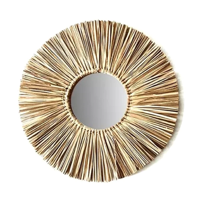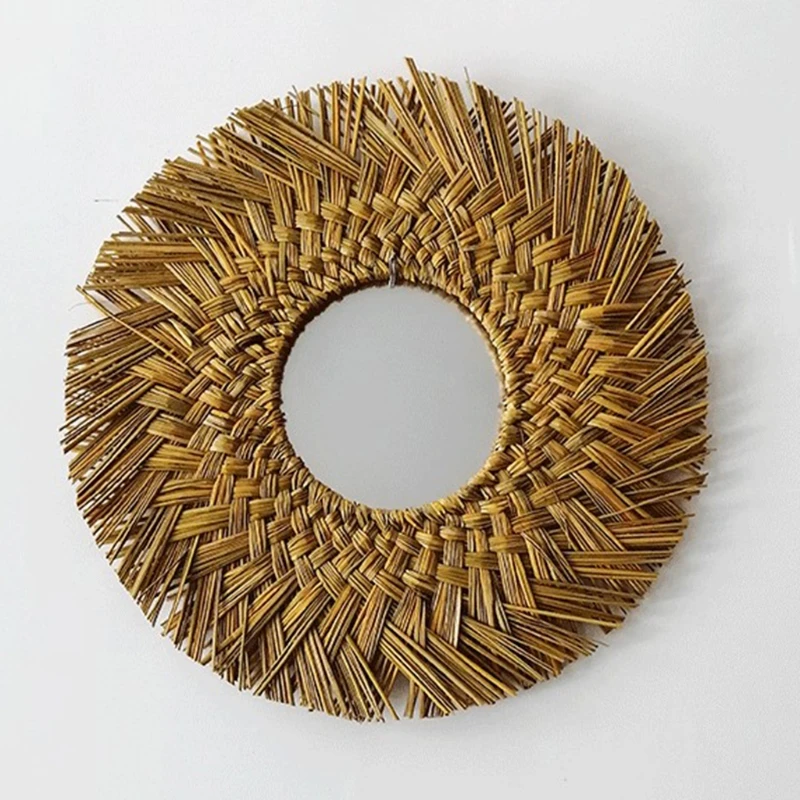 Плетеные водоросли из ротанга художественное зеркало для макияжа в скандинавском стиле настенное украшение для дома гостиной спальни реквизит для фотосъемки