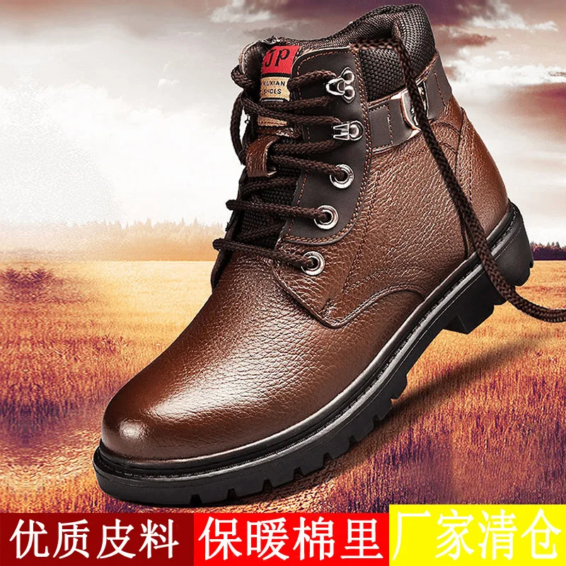 Мужские Водонепроницаемые ботинки из натуральной кожи, с плюшевой п...