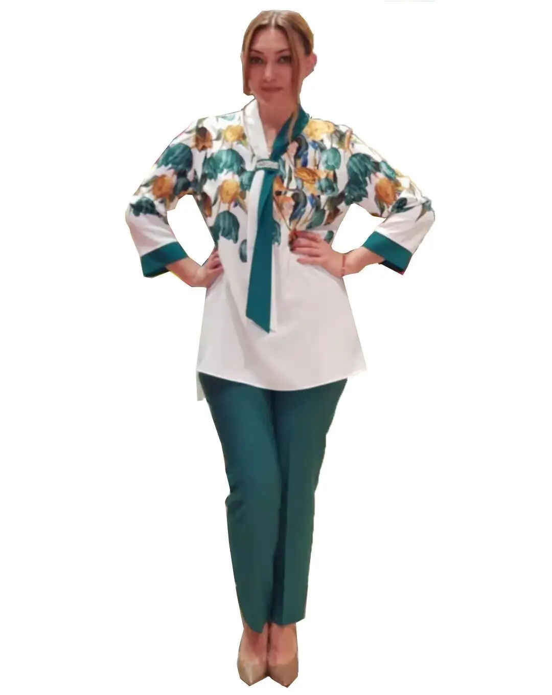 Женский офисный комплект из 2 предметов, элегантный топ с длинным р...