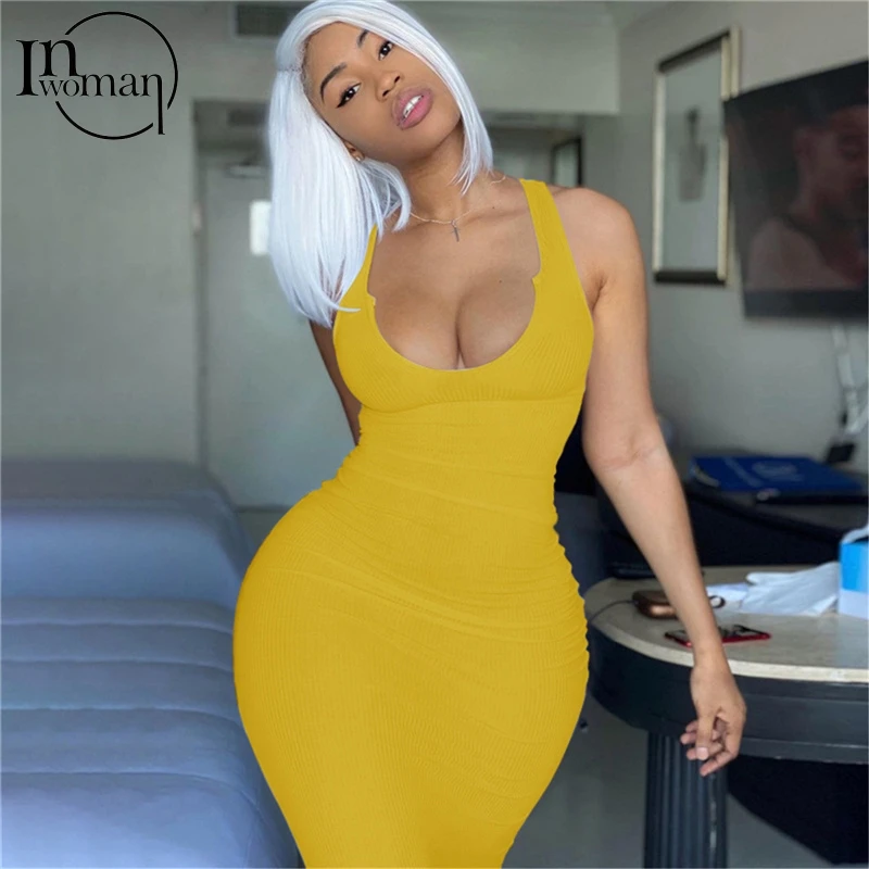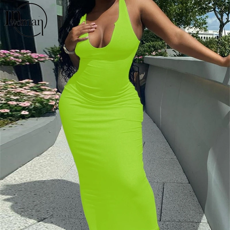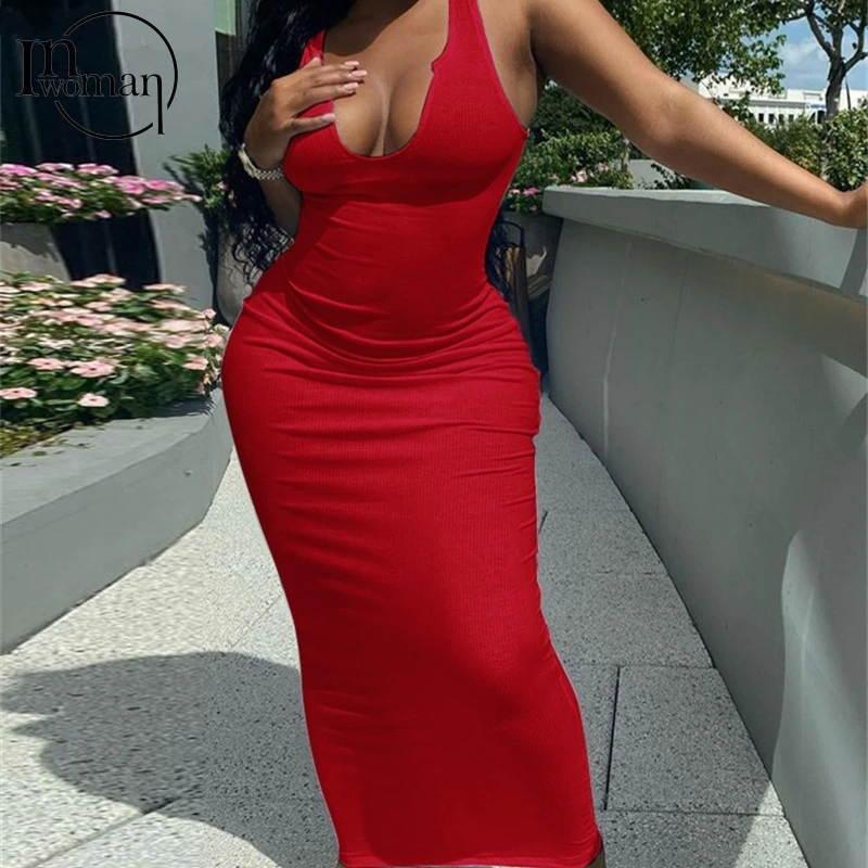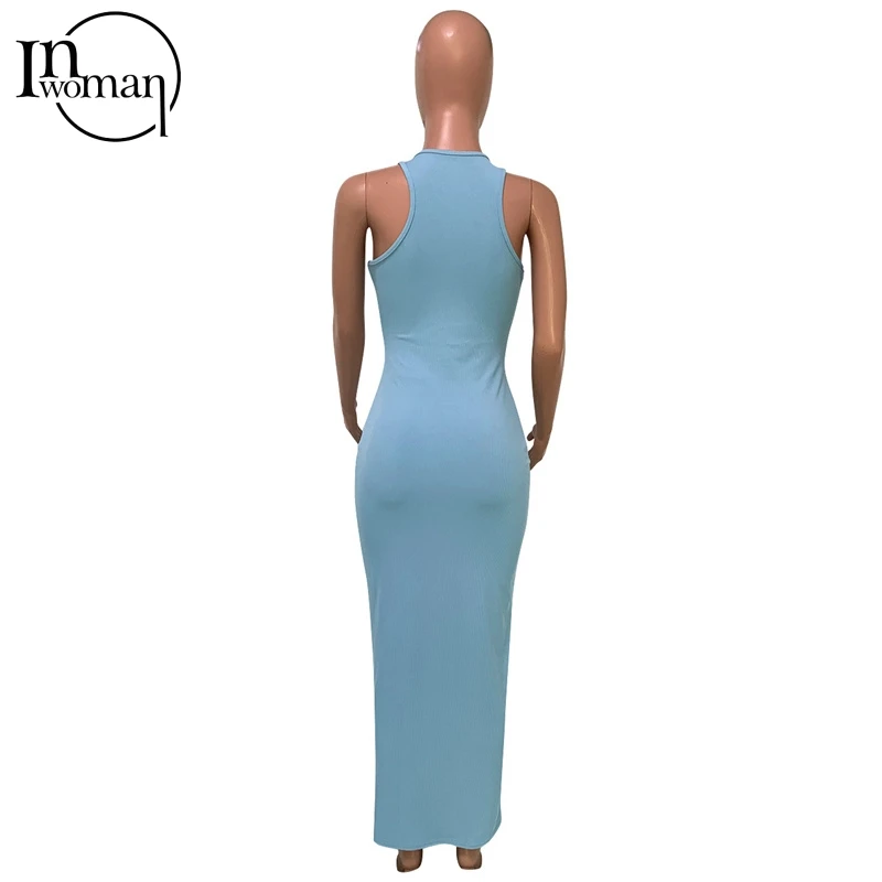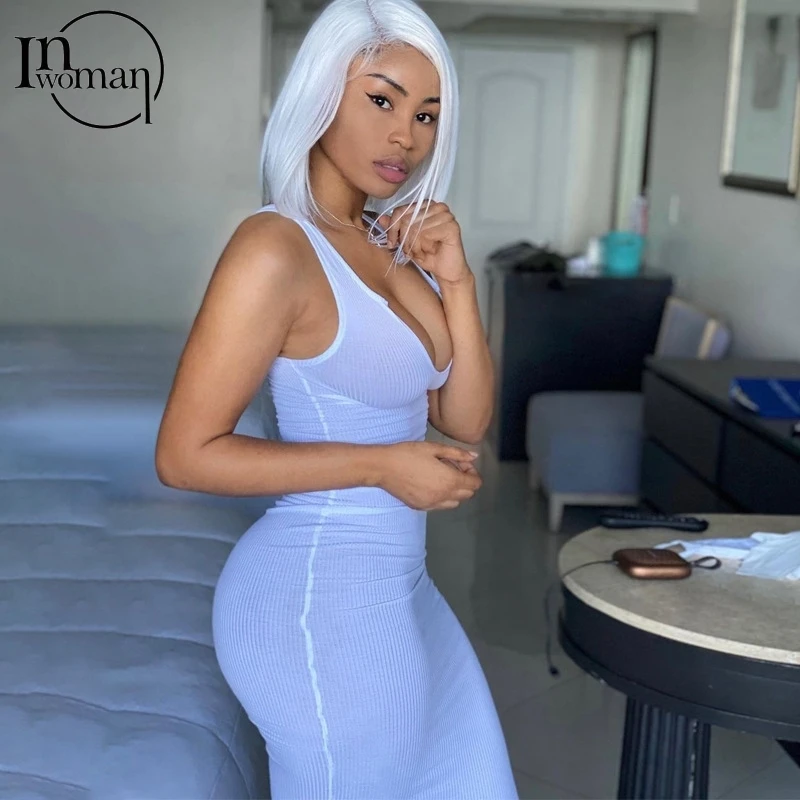 INWOMAN сексуальное облегающее женское платье Макси Сарафан черный, белый цвет Длинные вечерние платья женские ребристые летнее Клубные женские платья с запахом 2021