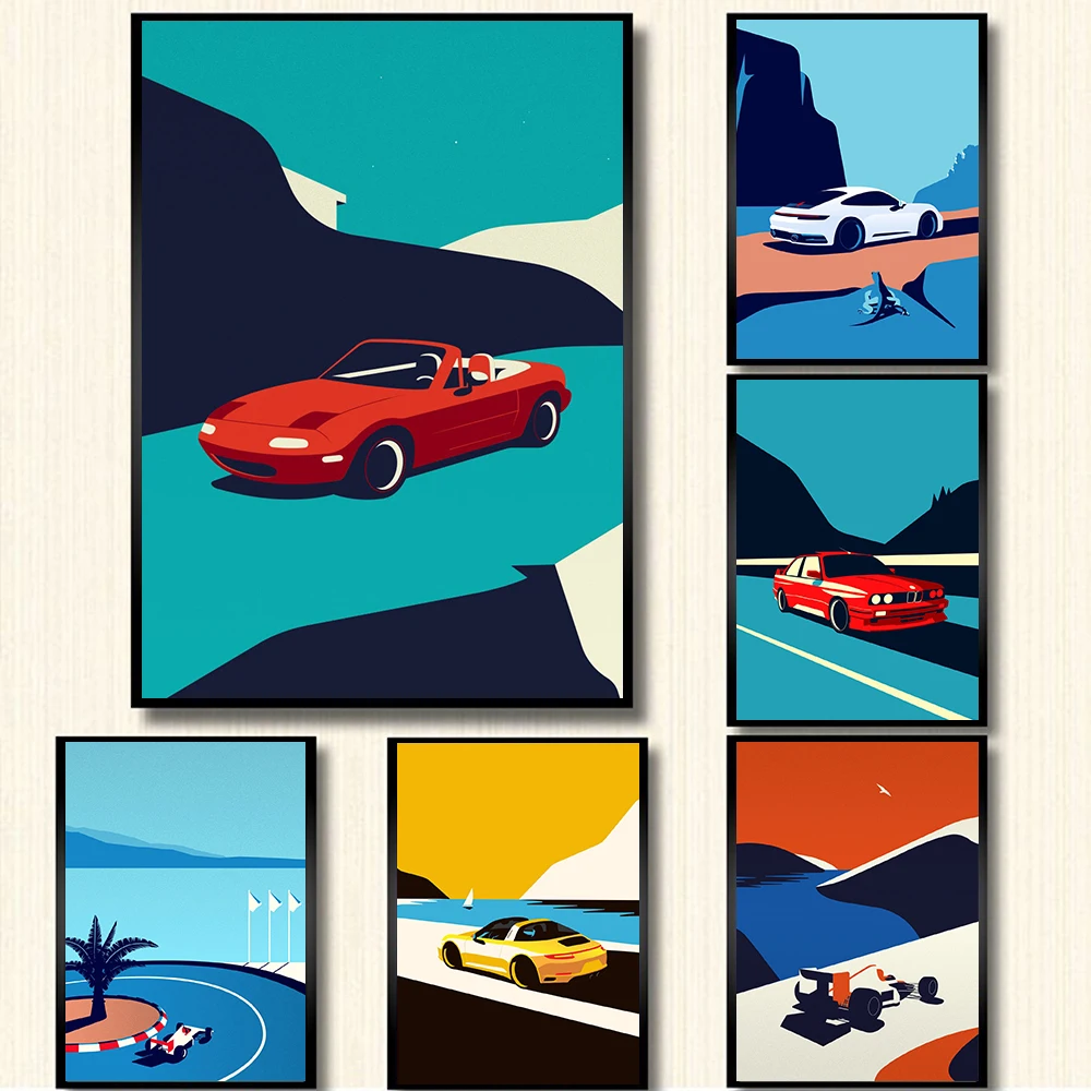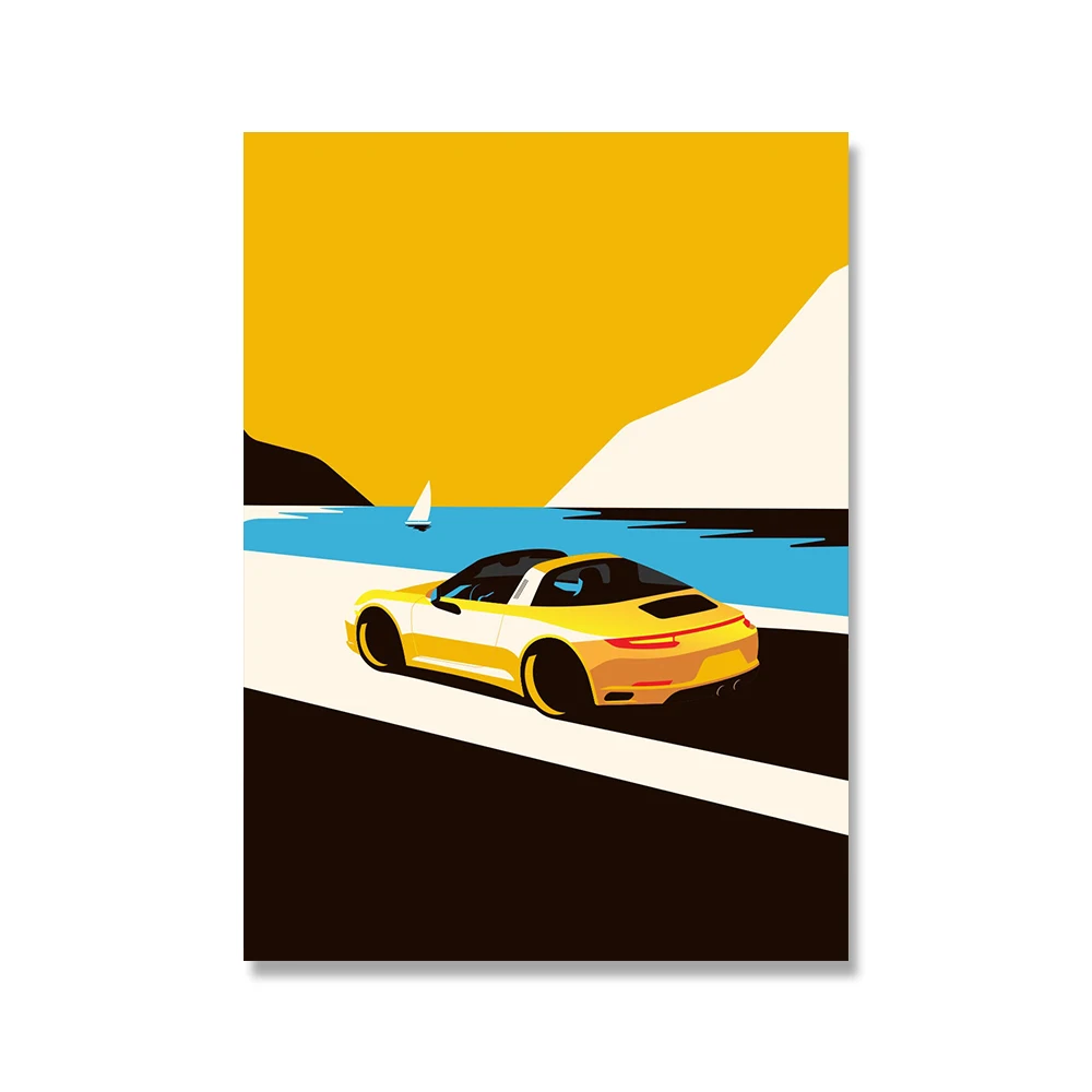 Hd художественные плакаты в скандинавском стиле для декора дома, классические модульные настенные картины 911 с автомобилями красного, желтого, зеленого, белого цвета, Картина на холсте для гостиной