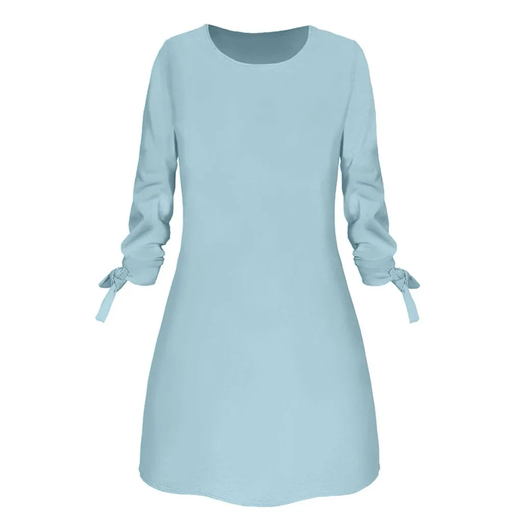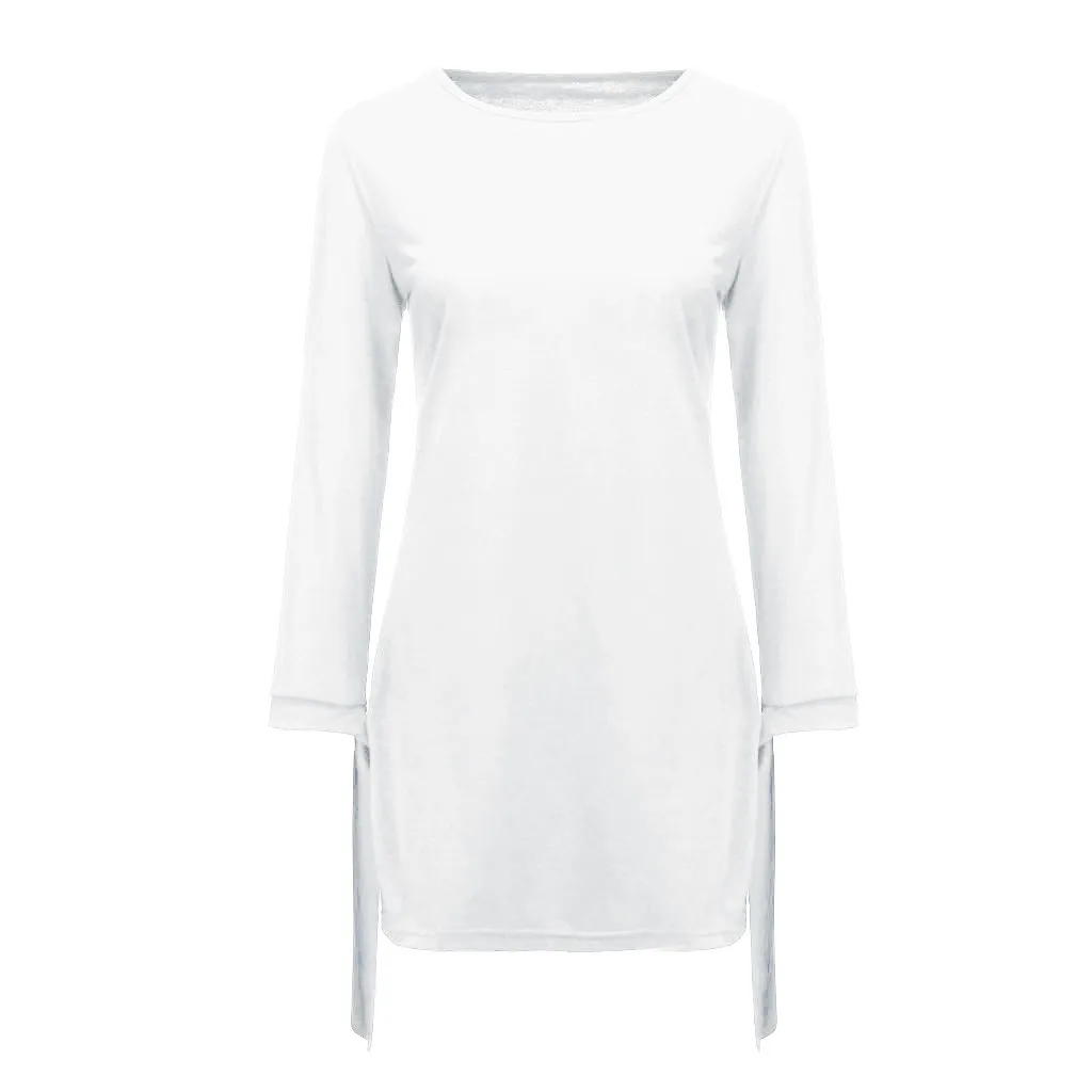 Женское однотонное Платье с длинным рукавом и круглым вырезом, элегантное свободное офисное мини-Платье, Белое Платье, 40 #, на весну