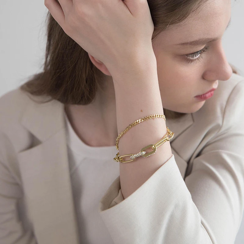 Женский многослойный браслет MEYRROYU, толстая цепочка из нержавеющ...