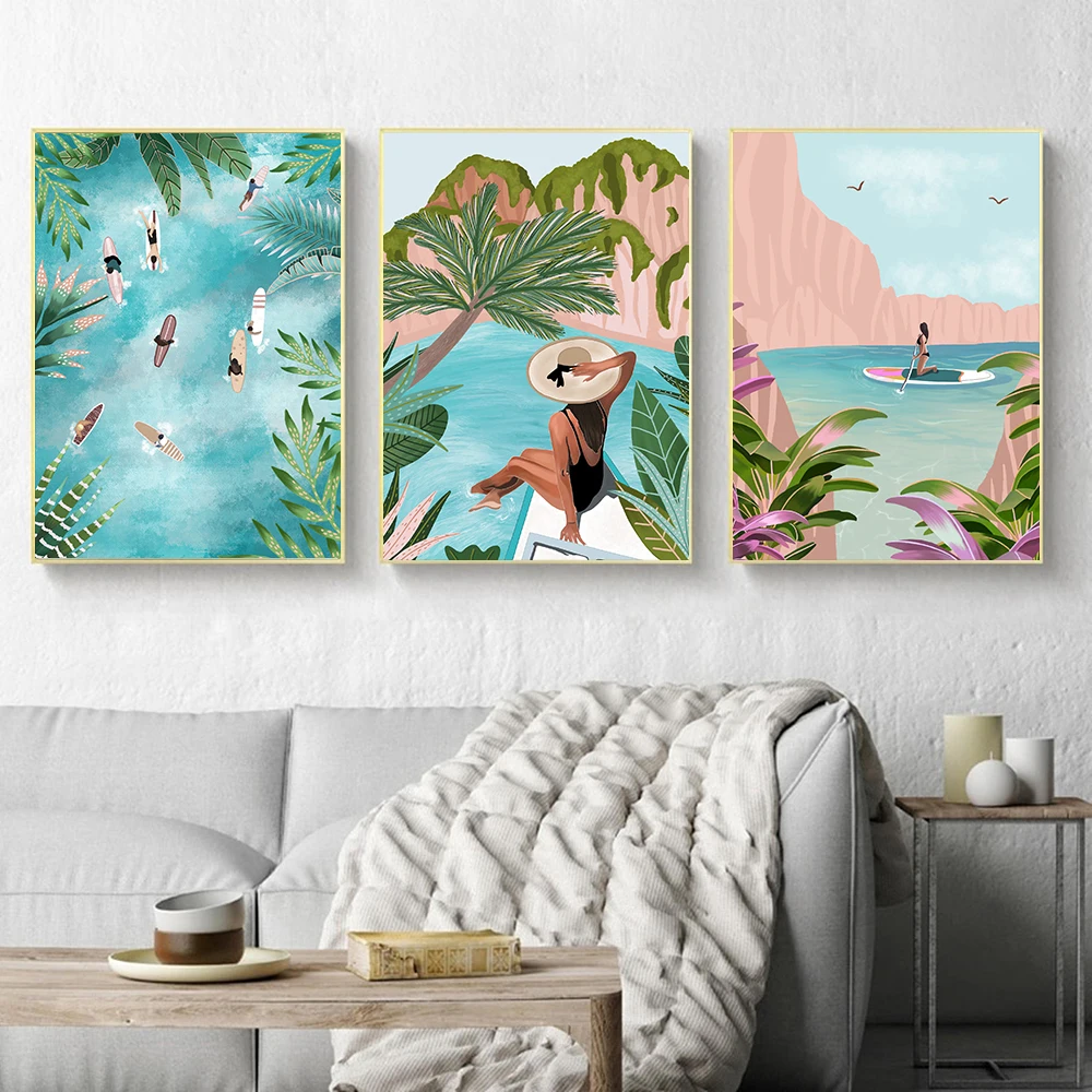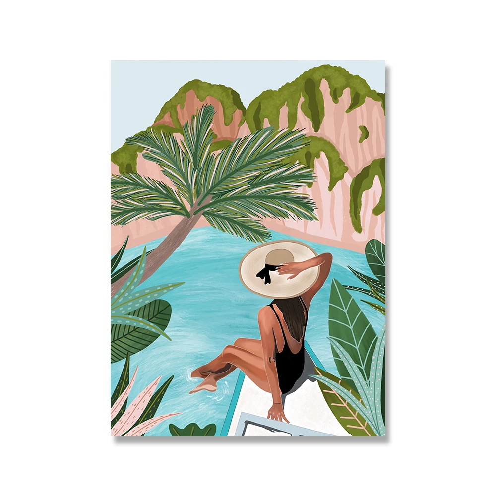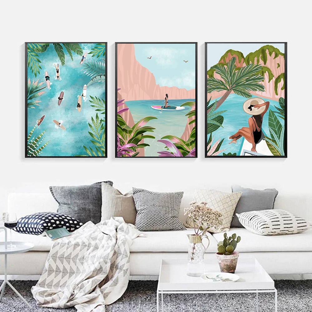 Картины с розовой пальмой и океаном, плакат в скандинавском стиле, ...