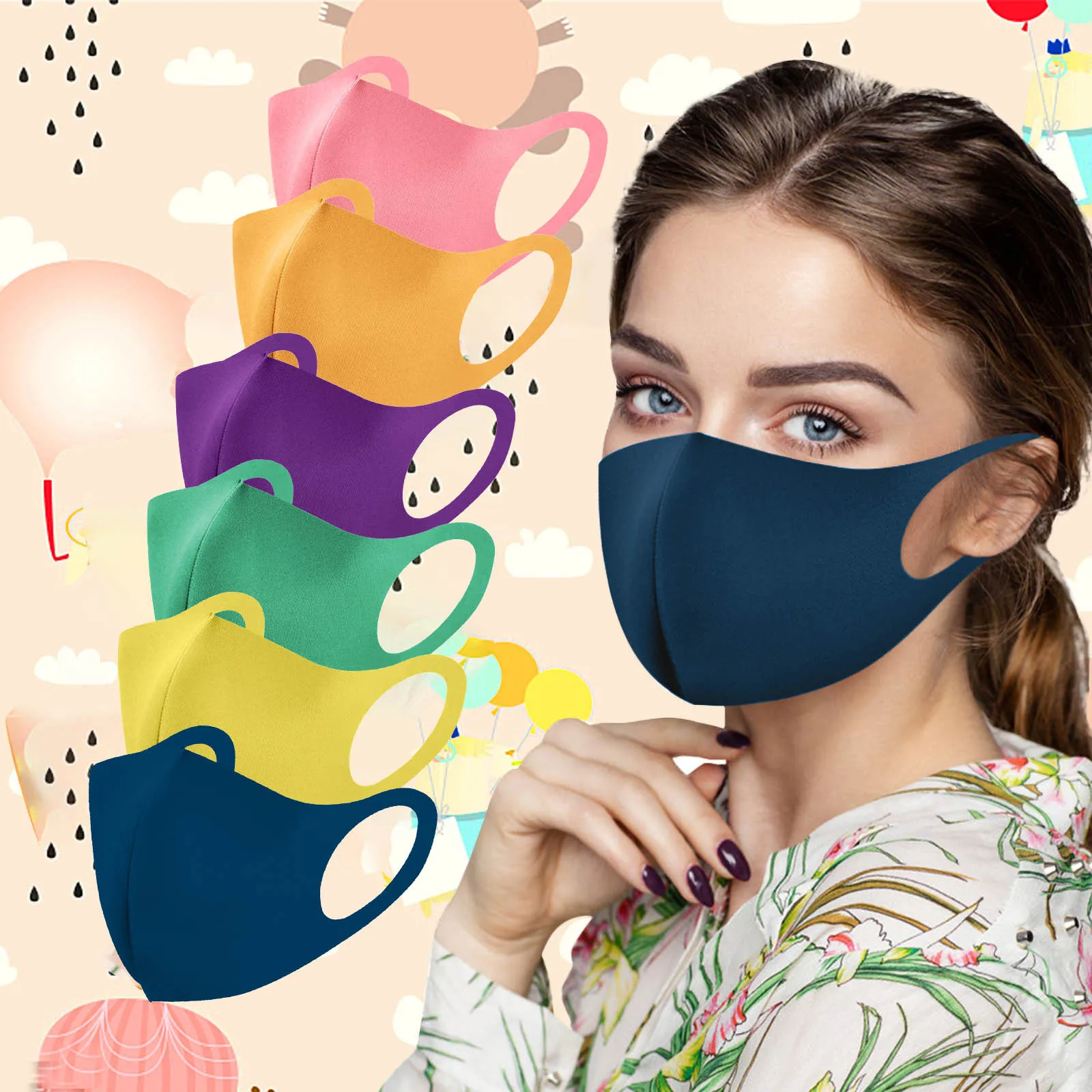Недорогие маски для рта 5 шт., синие, зеленые, розовые Моющиеся Мно...