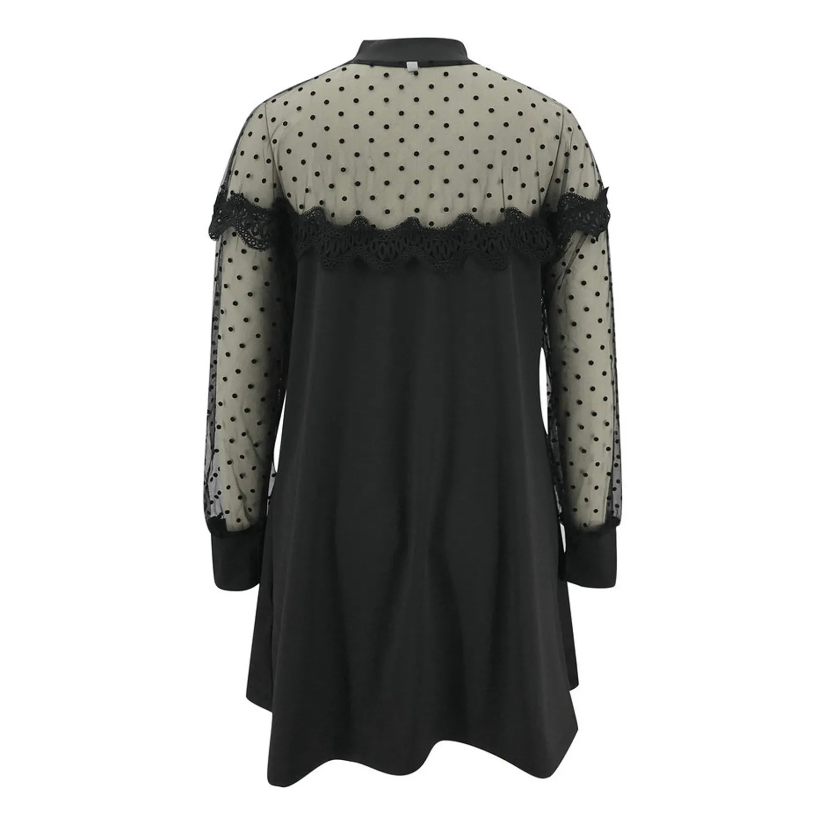 Женское кружевное платье с круглым вырезом и длинным рукавом, повседневное Сексуальное Тонкое мини-платье