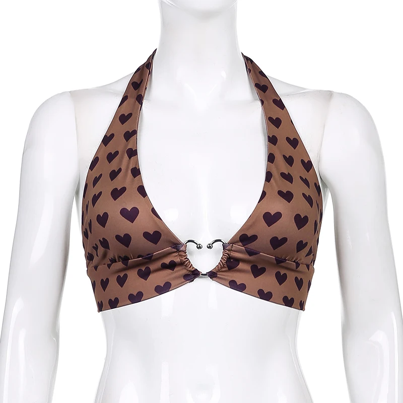 Топ женский летний пляжный с V-образным вырезом и металлическим завязыванием