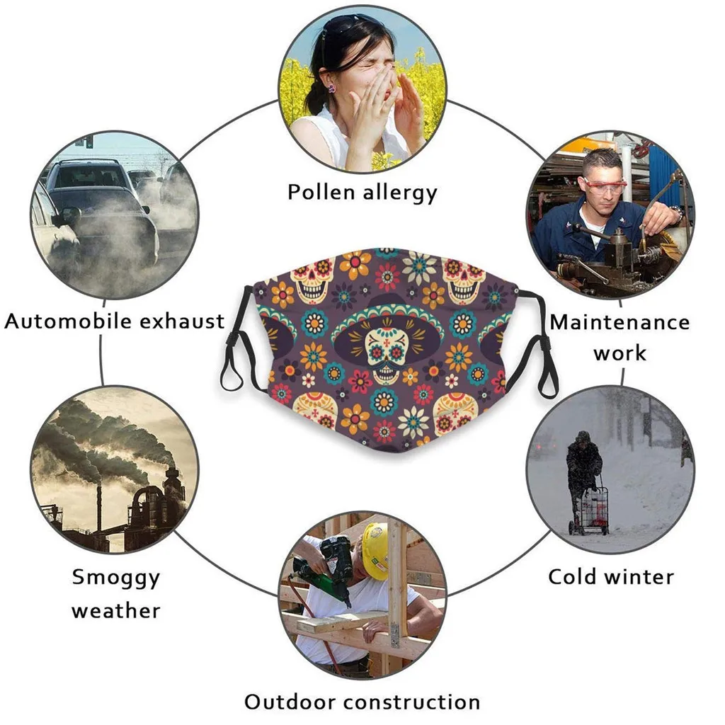Маски для лица PM2.5 с 3D-принтом черепа для мужчин и женщин, много...