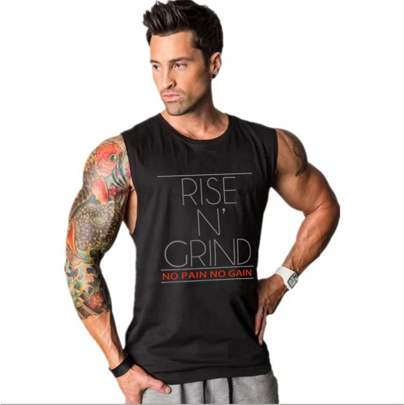 Топ Мужской для фитнеса, хлопковая майка-стринги для бодибилдинга, ...