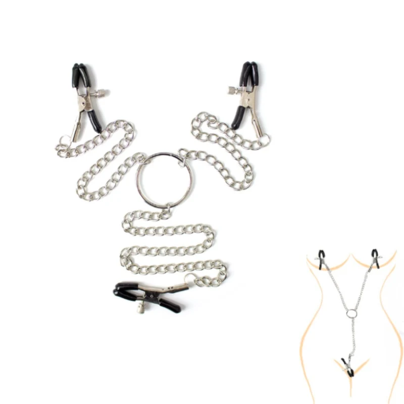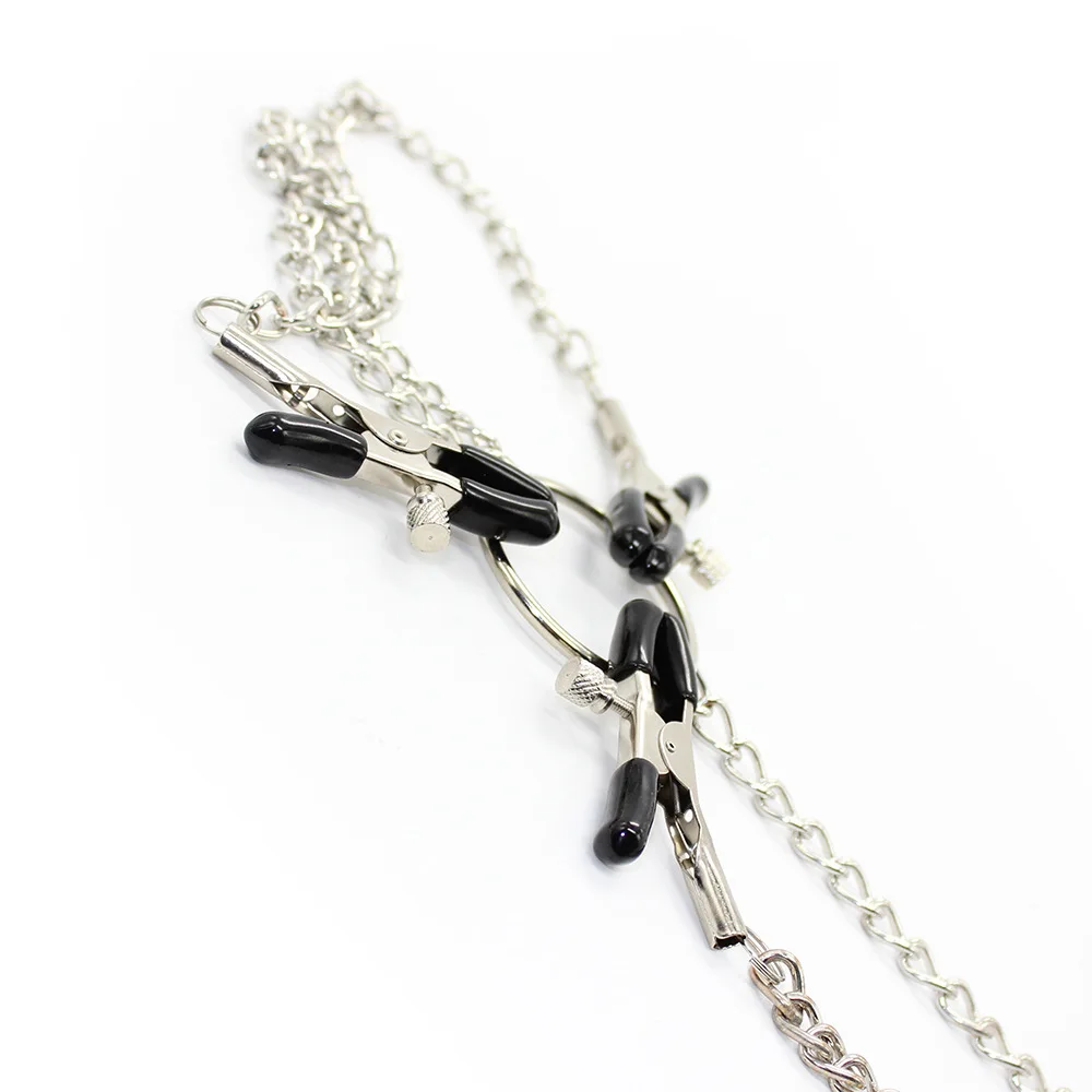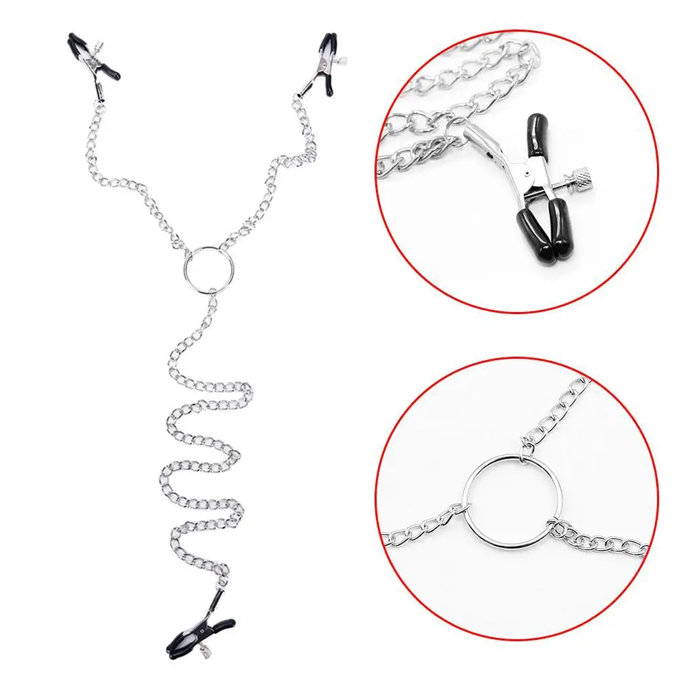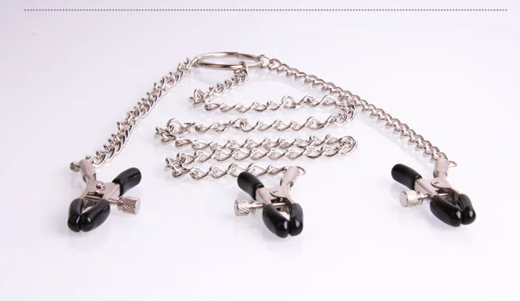Бондаж с тремя головками, 3 зажима, с цепочкой, для взрослых, для вечеринки, тела, ювелирные изделия, соска с двойным наконечником, половые губы клитор зажим, БДСМ, Регулируемая металлическая грудь