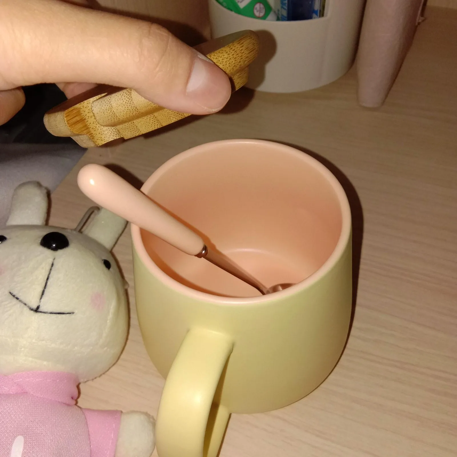 Кружка керамическая ручной работы с крышкой и ложкой, 450 мл