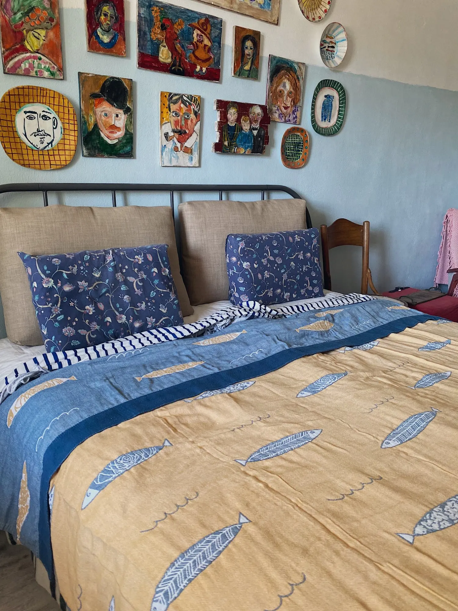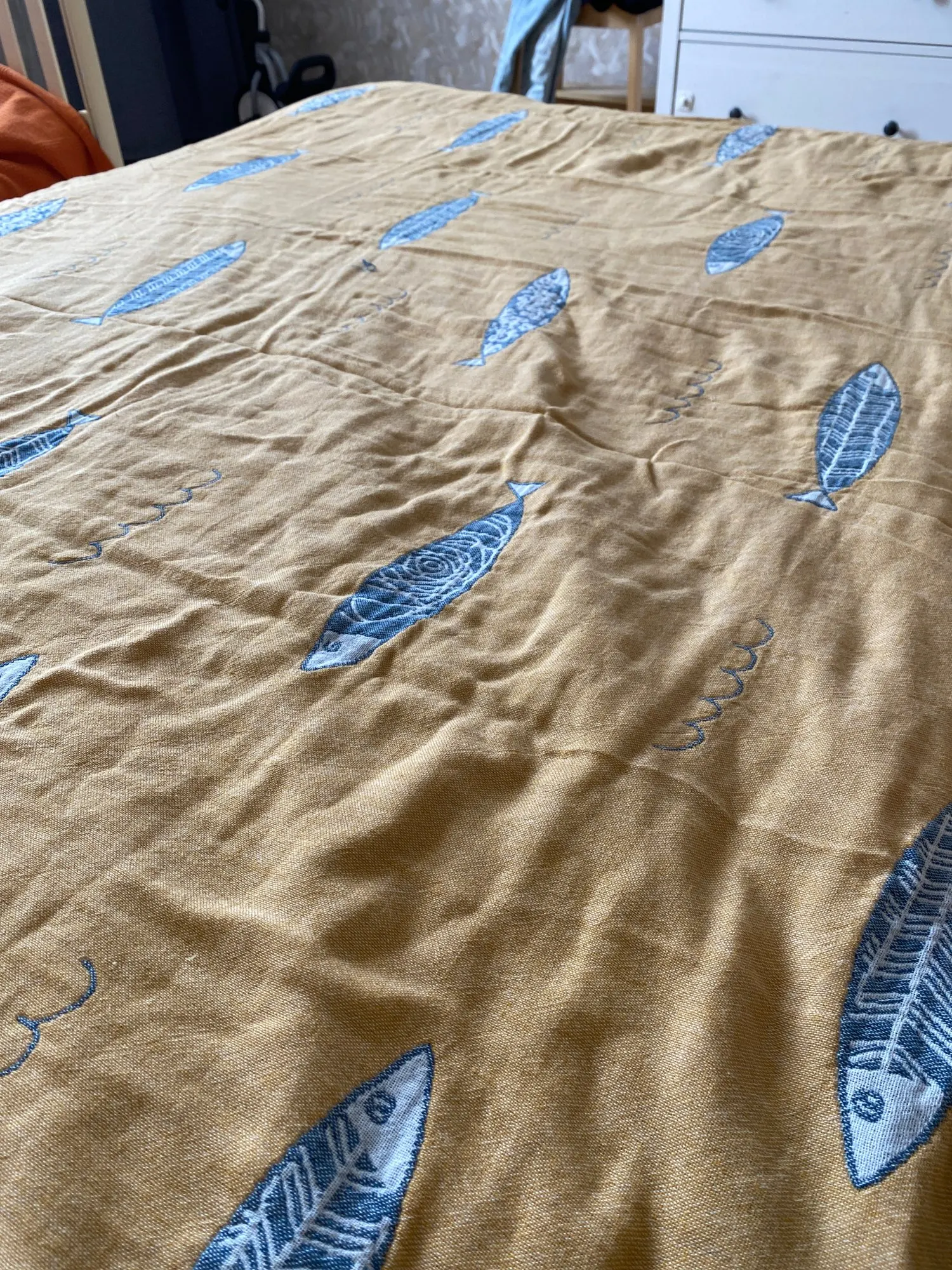 хорошее покрывало, мягкое, приятное на ощупь, не сказала бы, что двустороннее, с изнанки видно, что это изнанка, кое-где торчали нитки, доставка быстрая