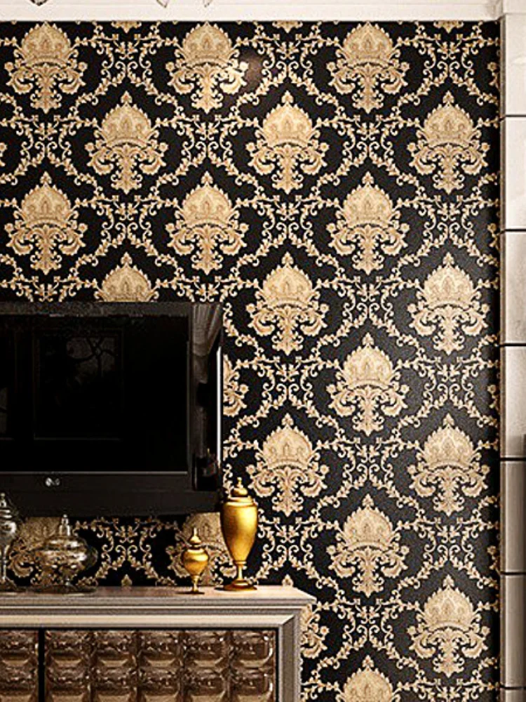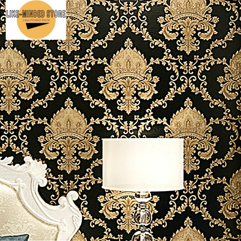 Роскошные тисненые металлические обои из дамасской ткани 3D, черного и золотого цветов, декоративные обои для гостиной, современная домашняя спальня