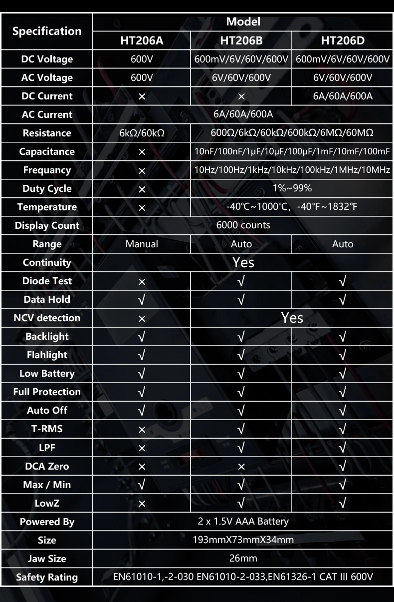 Display Count6000 Counts, 2000 counts (HT200)