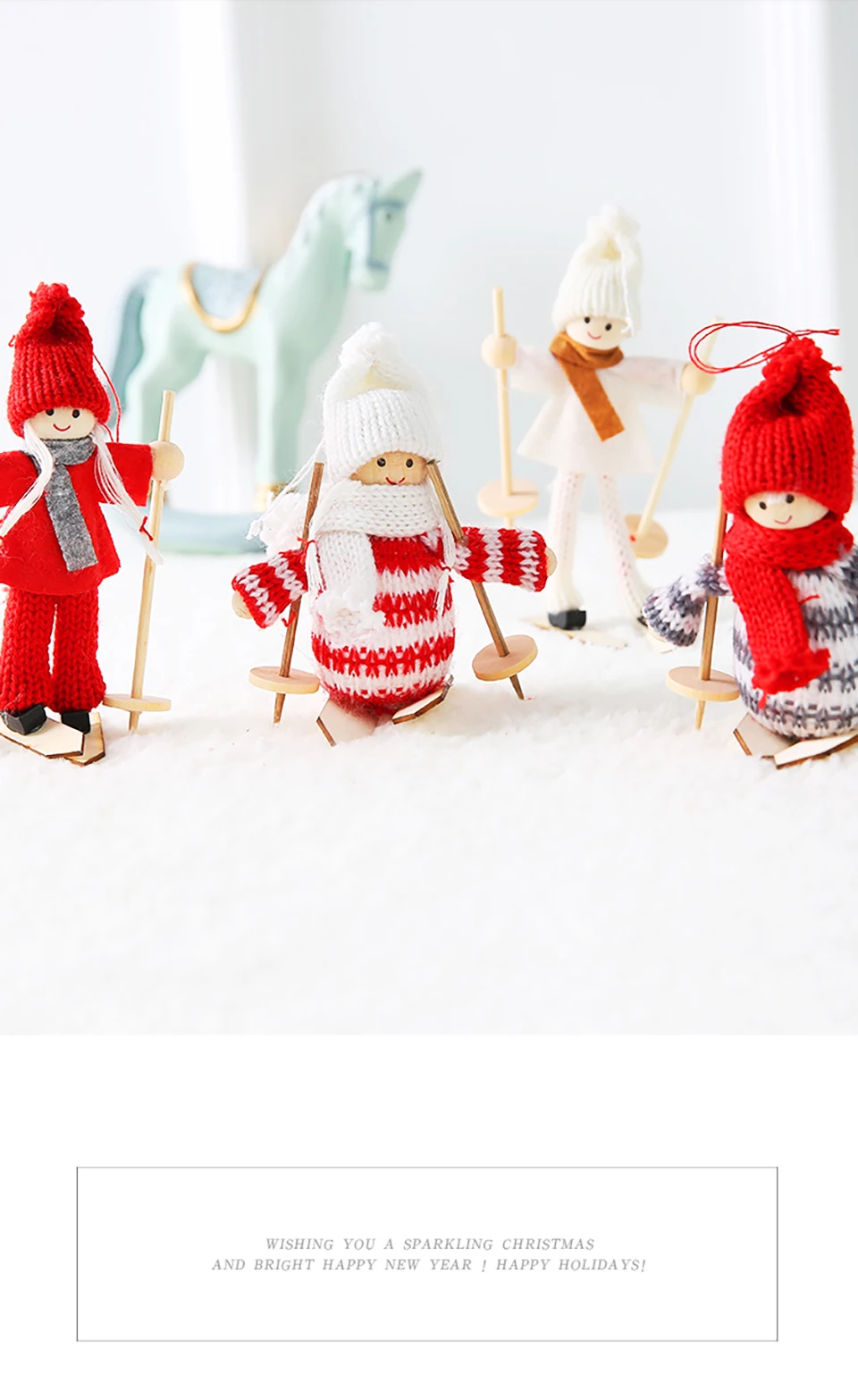 Пара креативных мини-лыжников, кукла для мальчиков и девочек, Рождественская елка, гирлянда, подвесная сцена, аксессуары, украшение, подвесные украшения