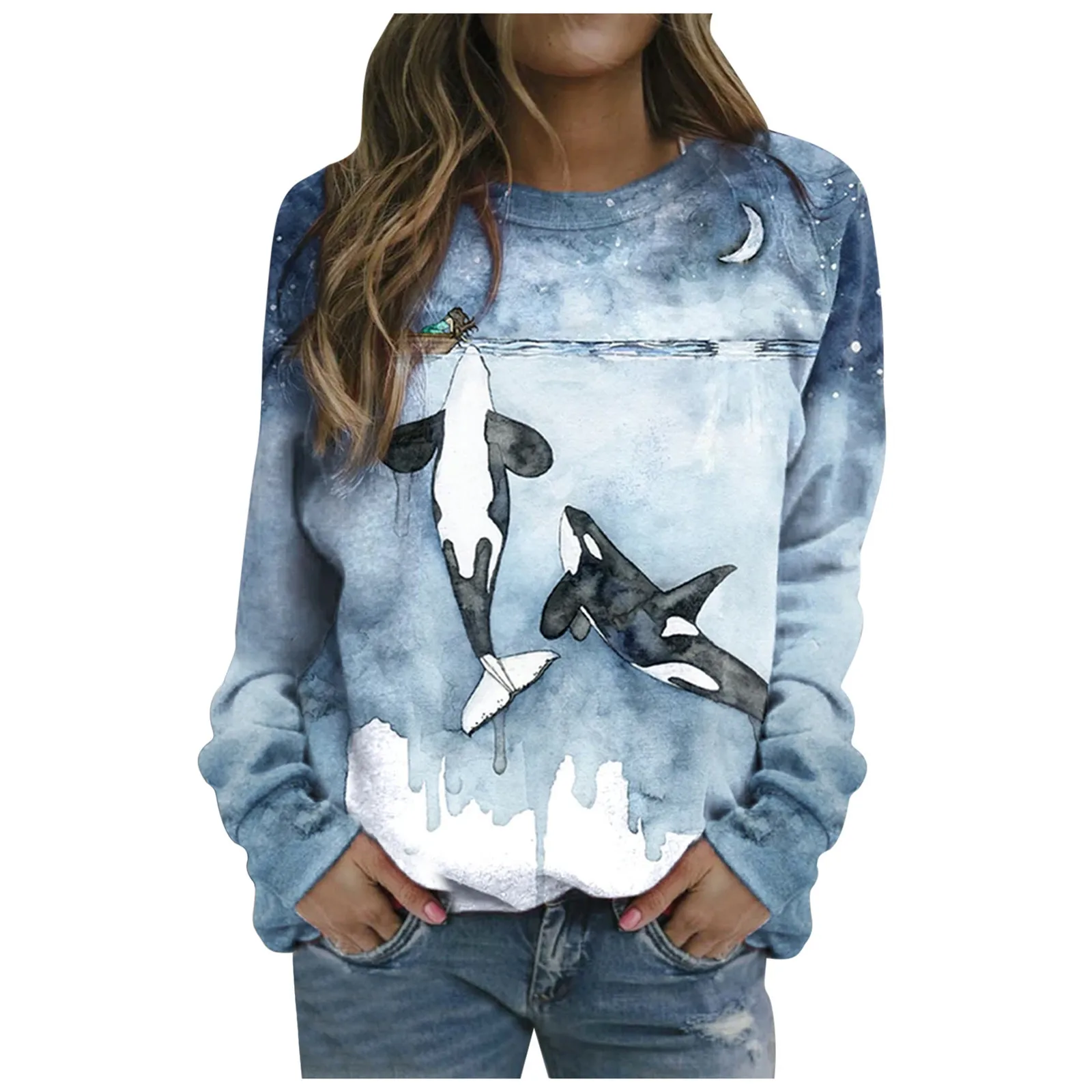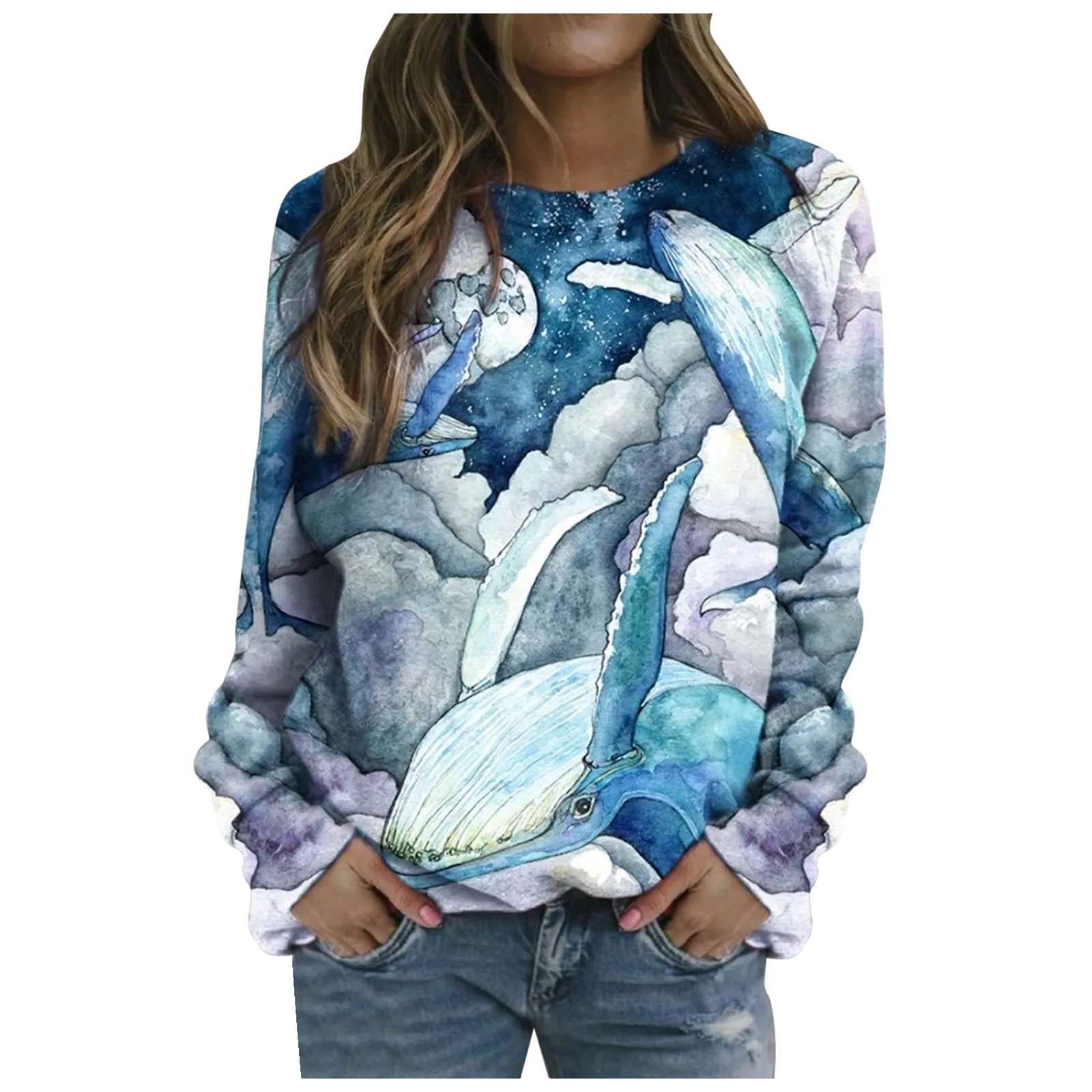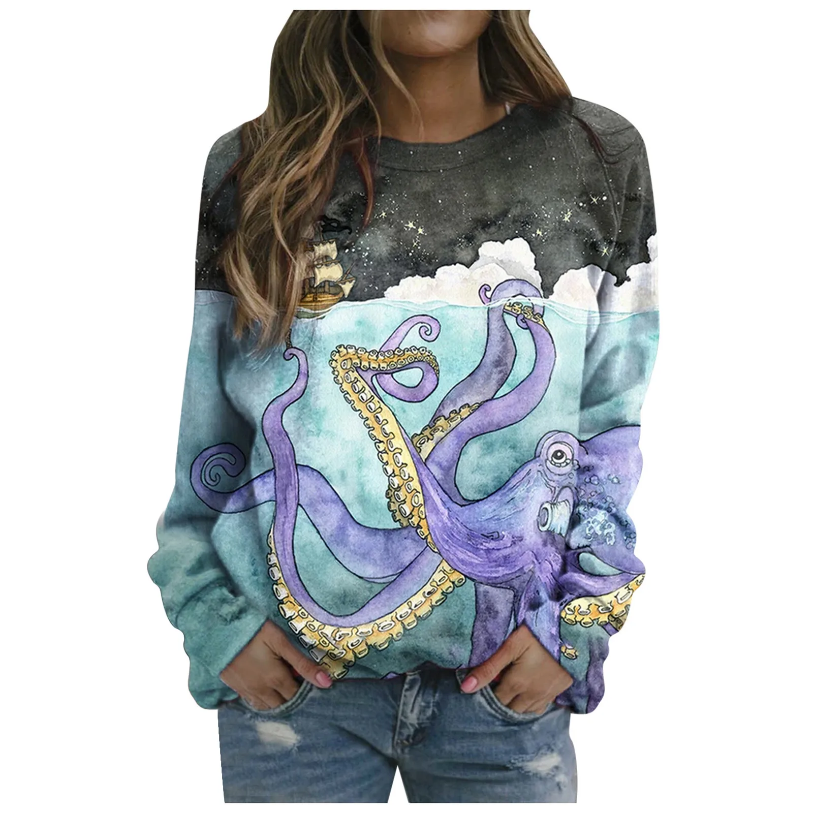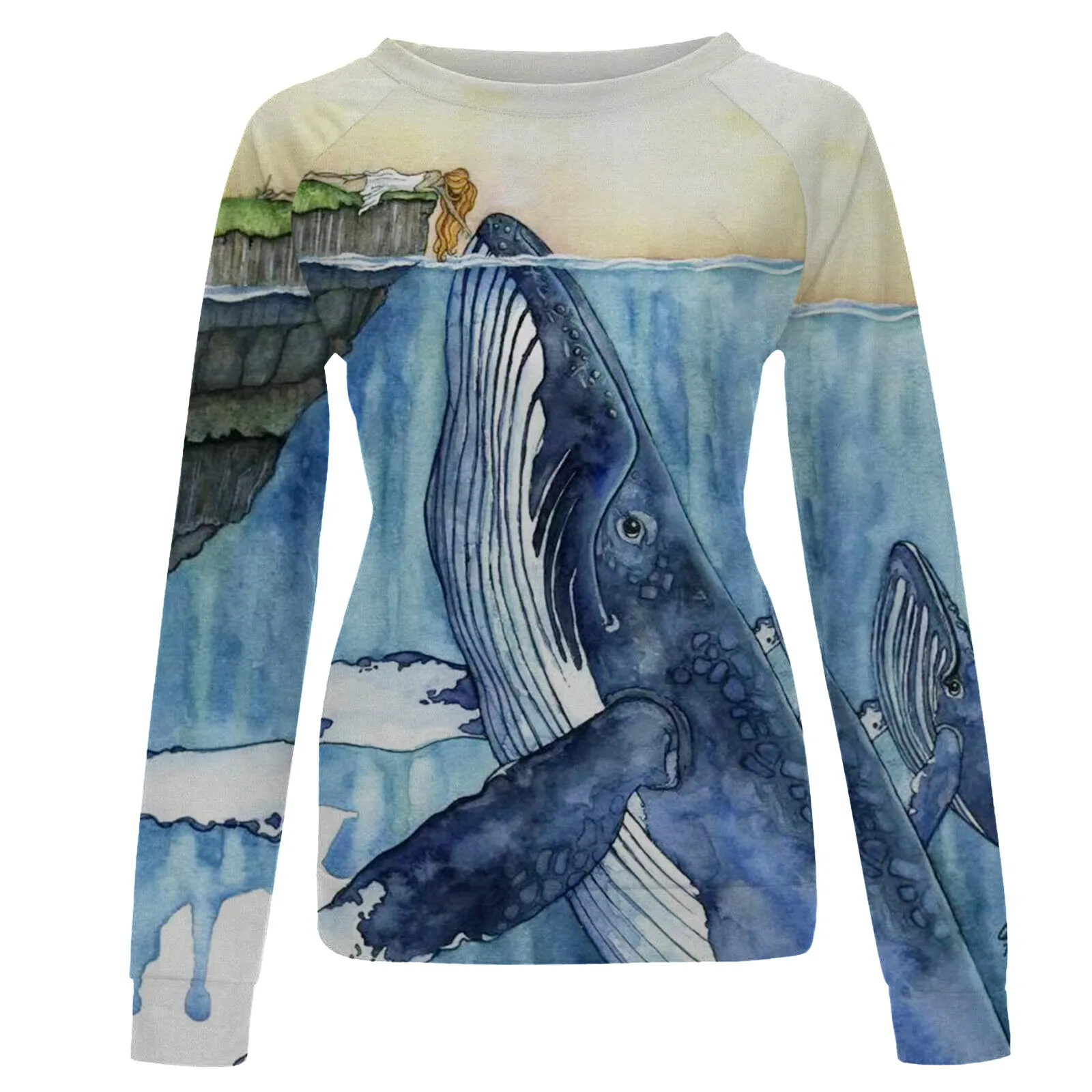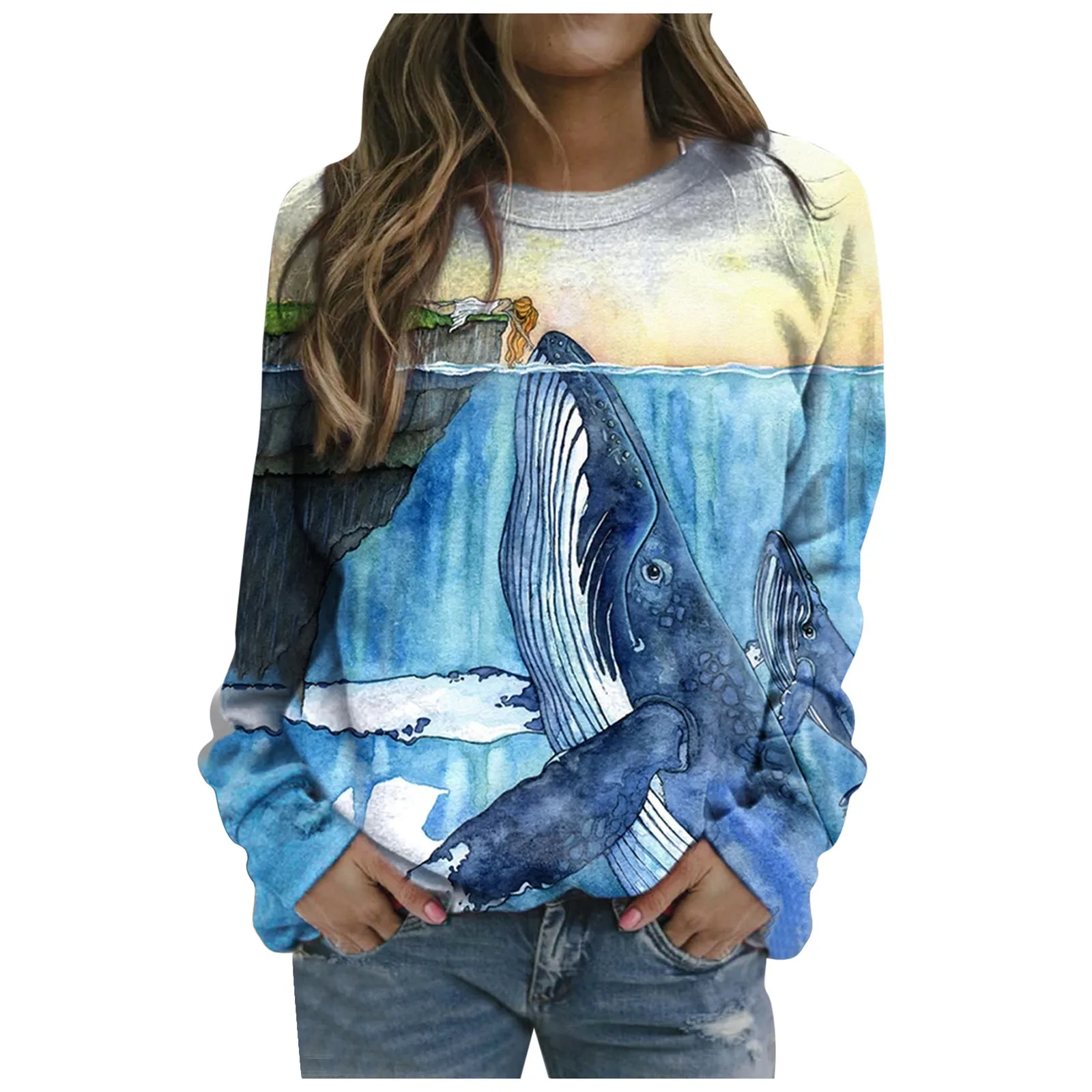 Футболка с длинным рукавом короткая блузка с принтом морских животных
